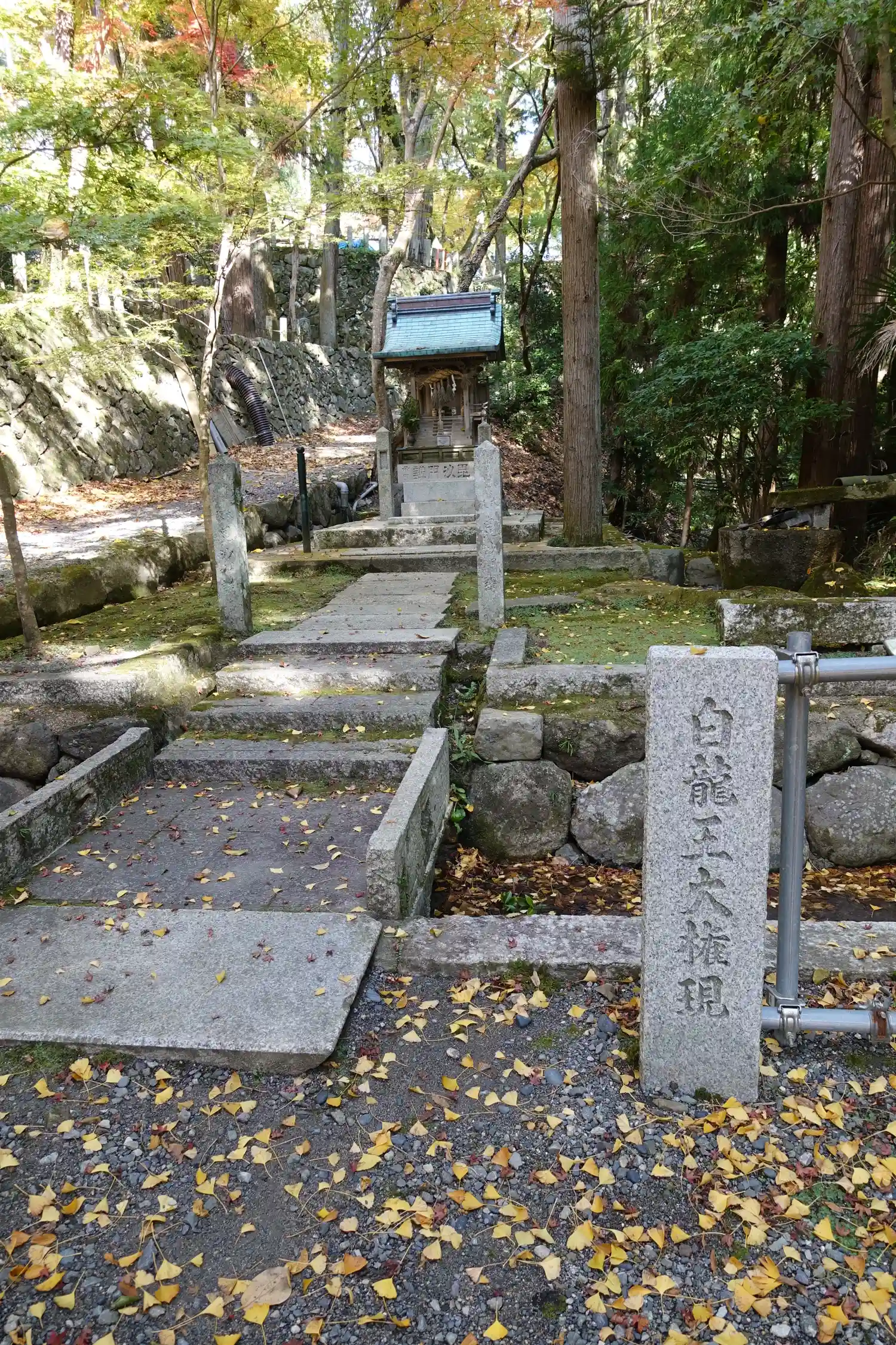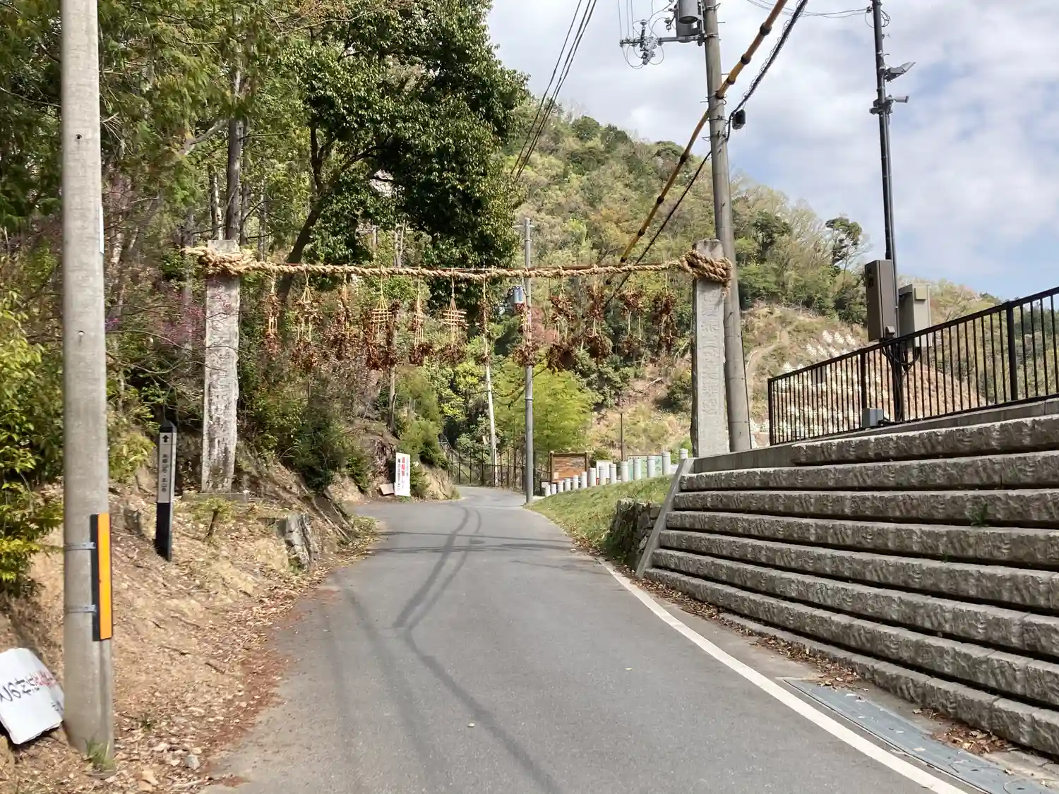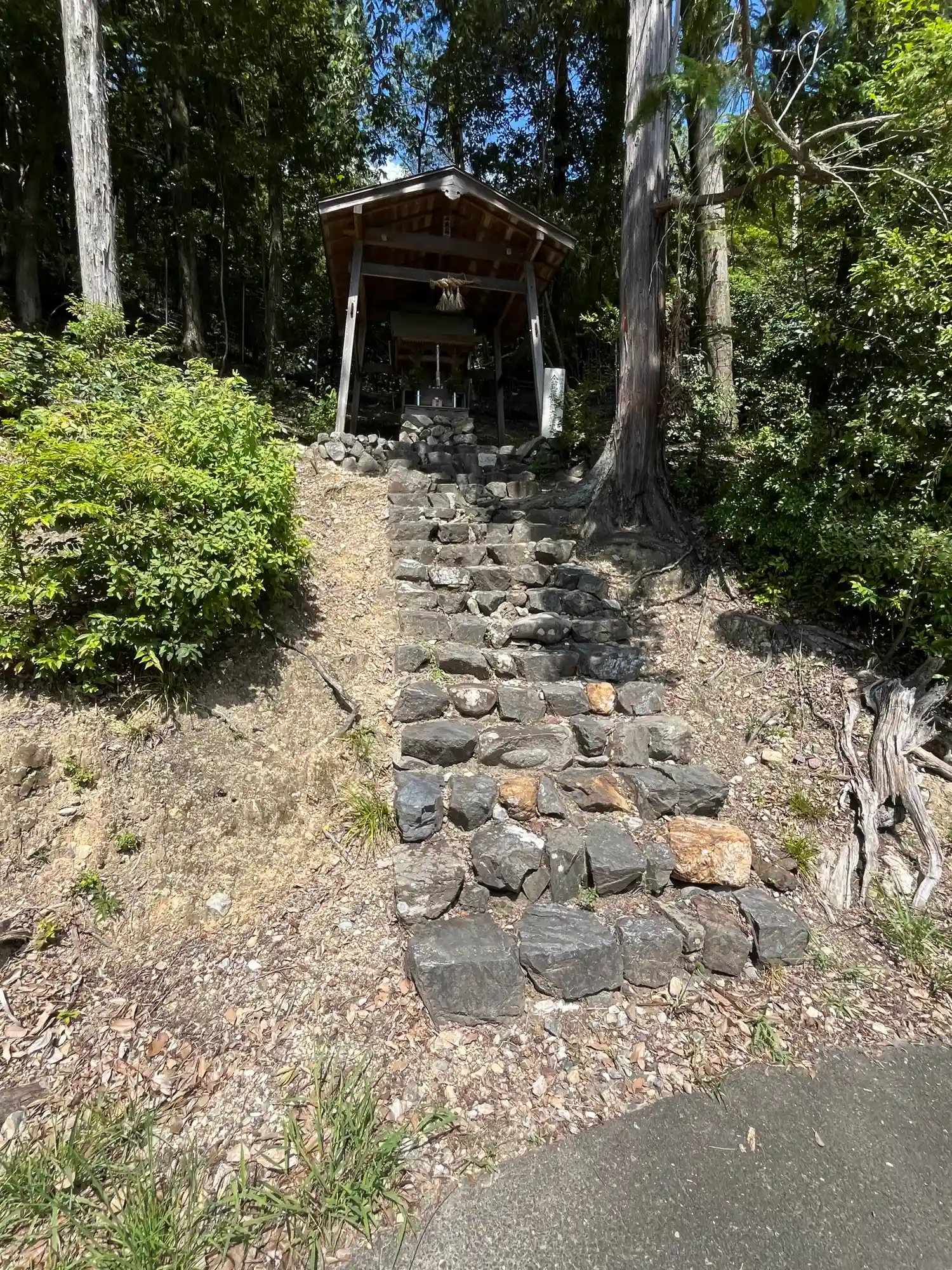参道の新名神を跨ぐまえの駐車場の入口あたりにあります。