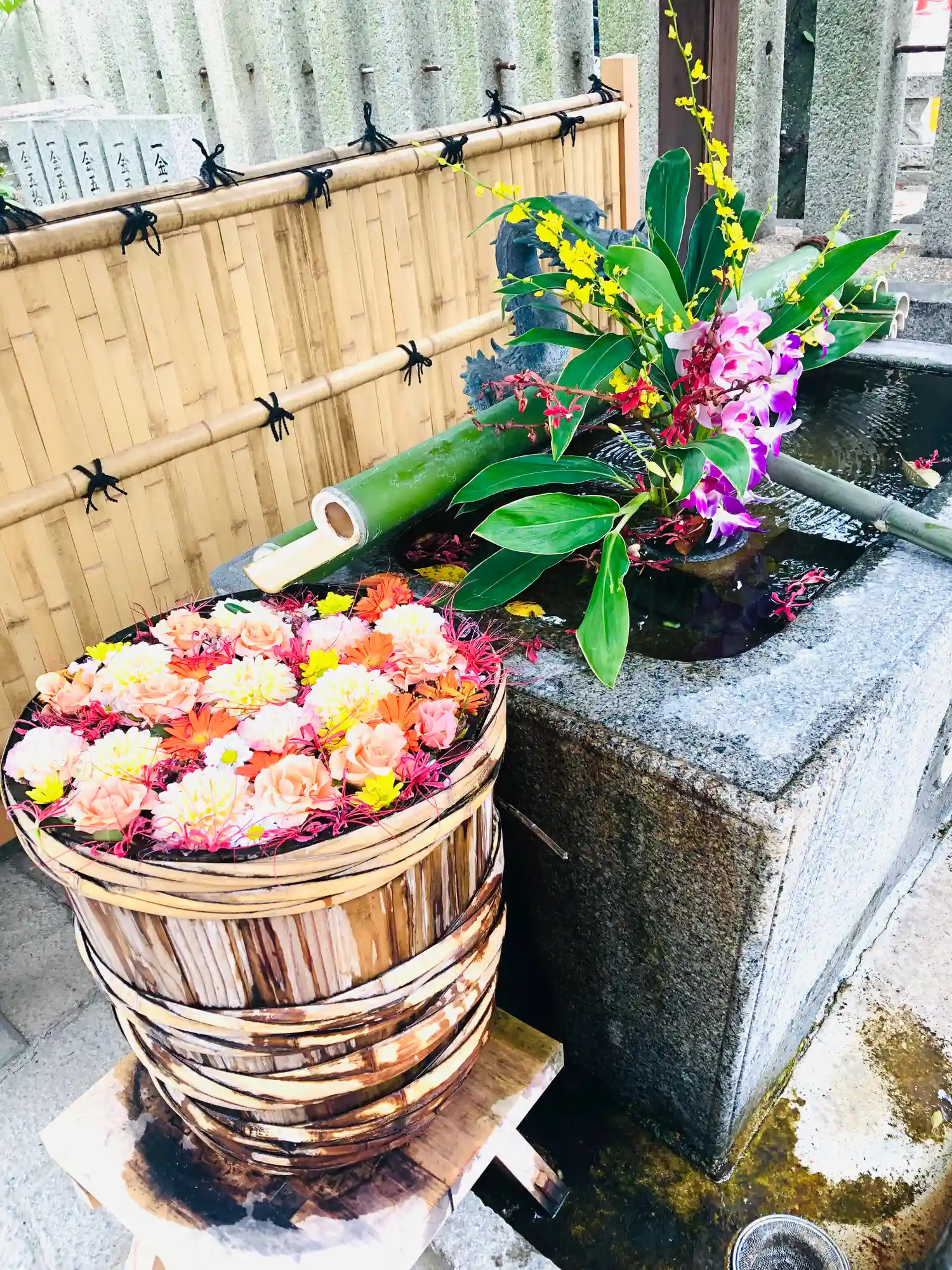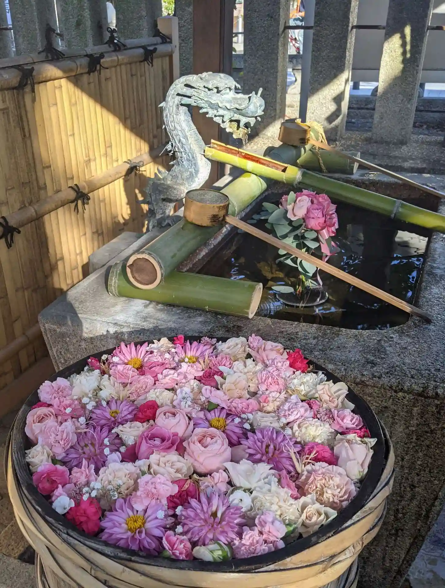 手水鉢が綺麗に飾り付けられていて華やかでした。