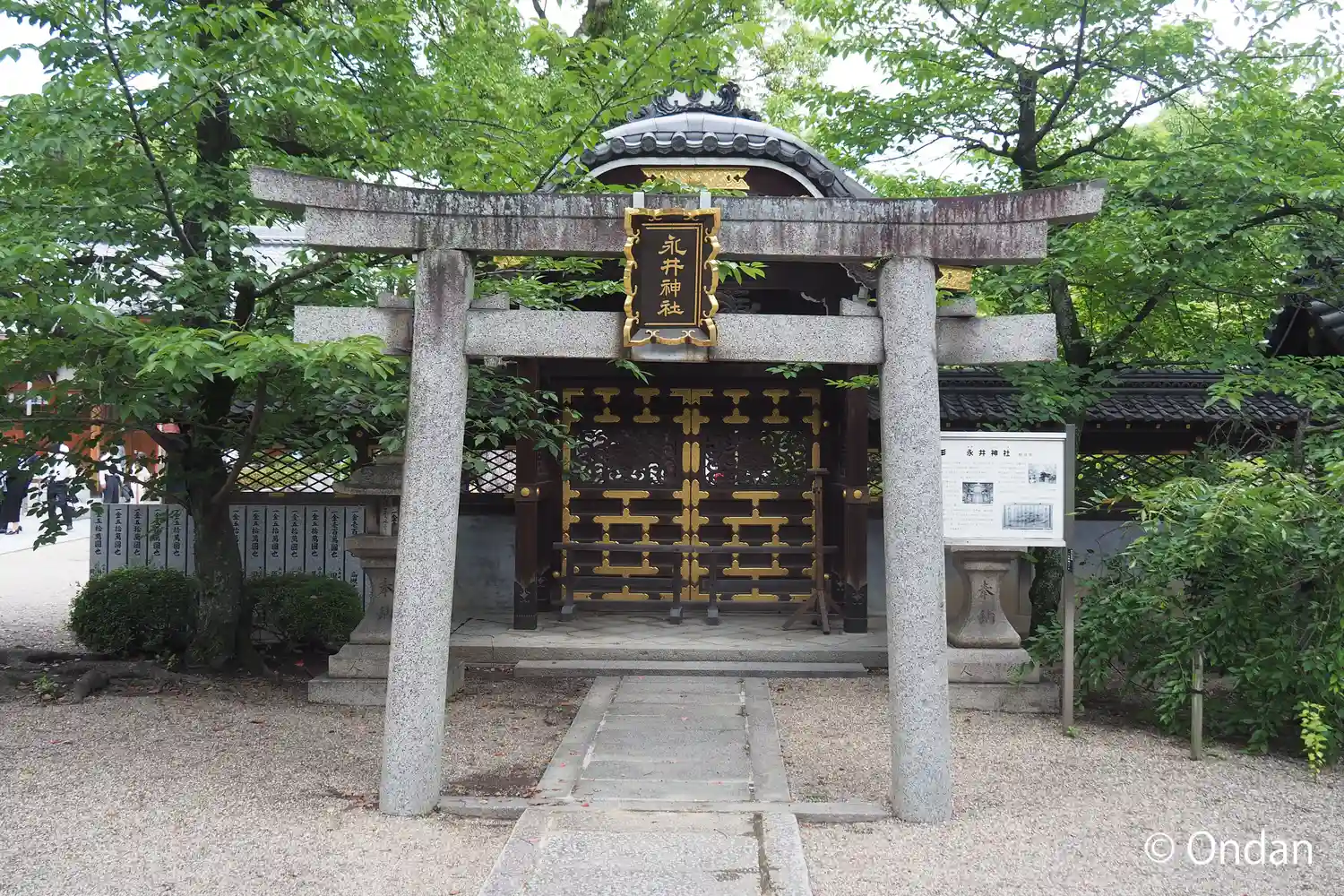 本殿手前にある永井神社。高槻城主永井直進が創建。鳥居の先に唐門、さらに奥に拝殿という末社とは思えない造り。