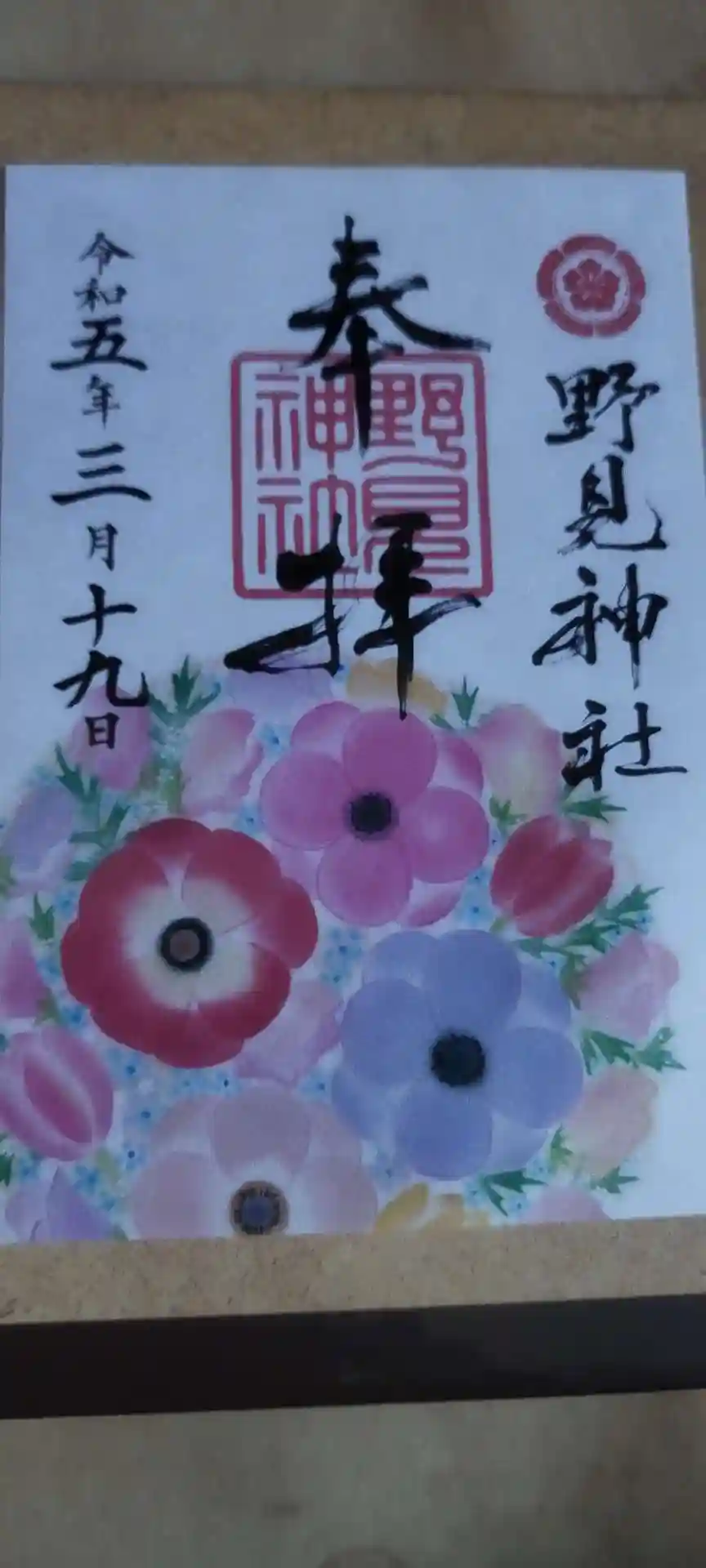 大阪府高槻市の野見神社さんから、御朱印をいただきました。