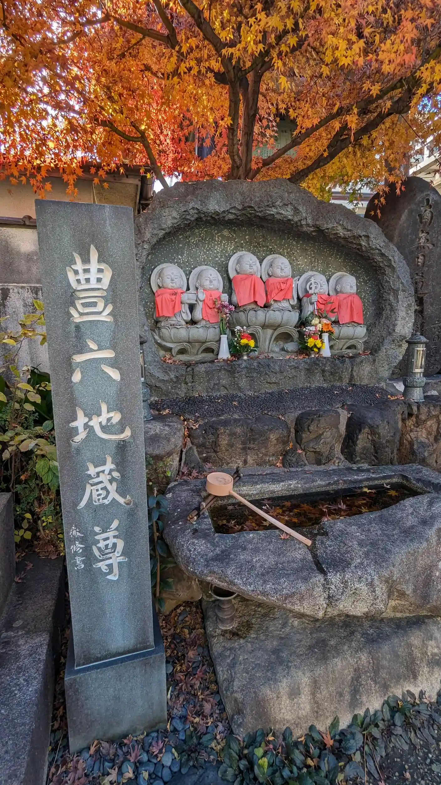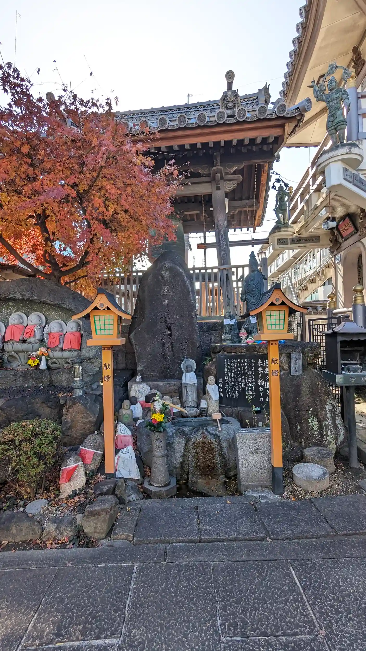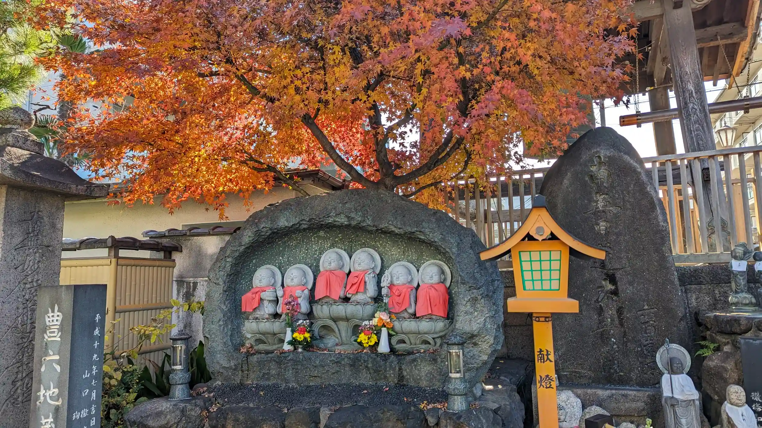 高槻城周辺散策。山門くぐってすぐの紅葉の下の豊六地蔵がとっても印象的でした🤗ご住職不在ゆえ御首題はナシ・・・😥