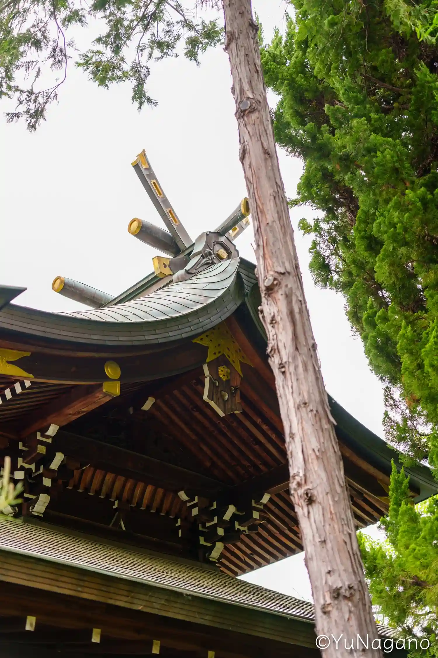 長イスに座り、ゆっくりしました。この角度から見る拝殿のお姿も素敵です。