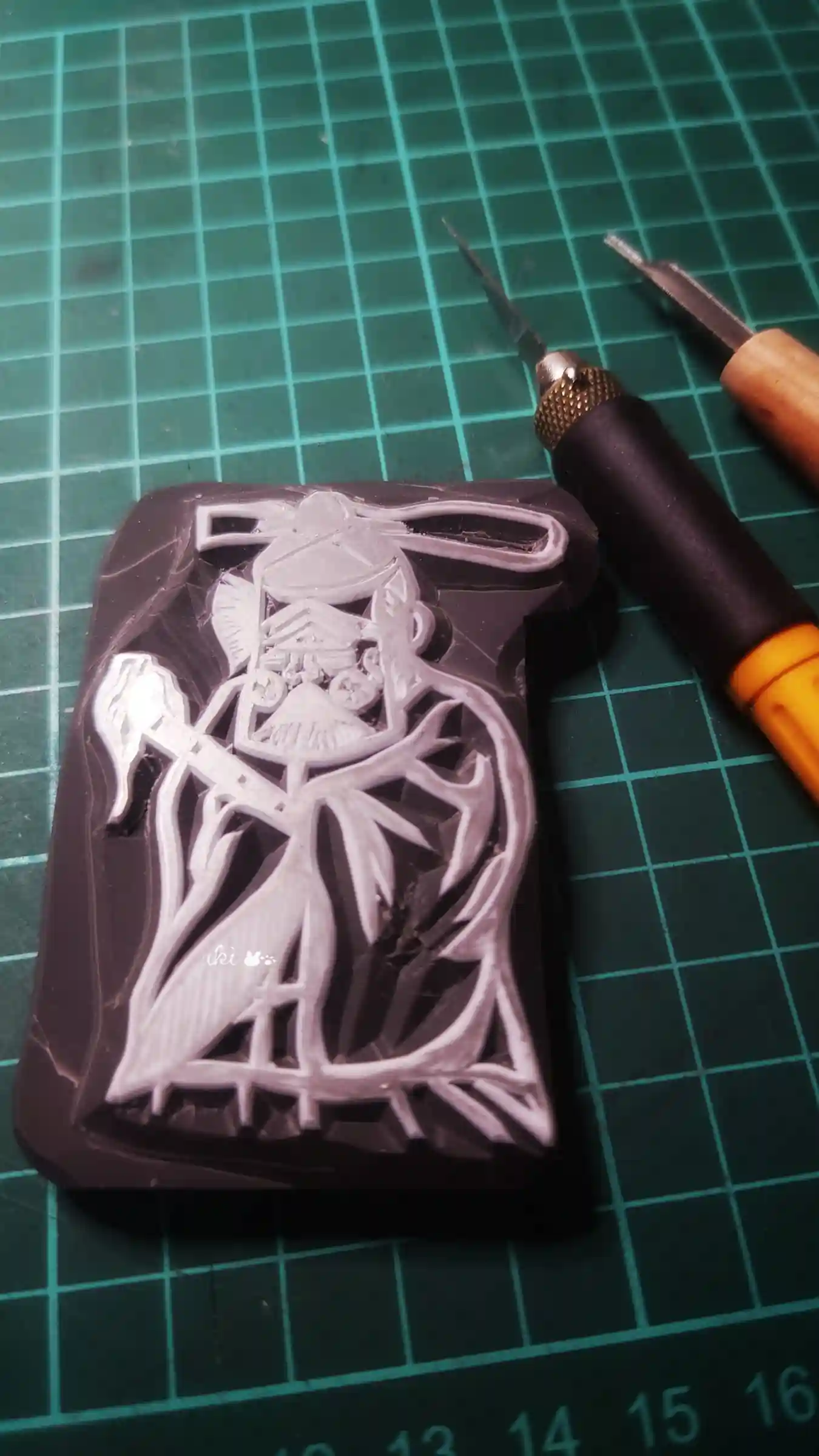 御巫のはんこ、上手く彫れなくて