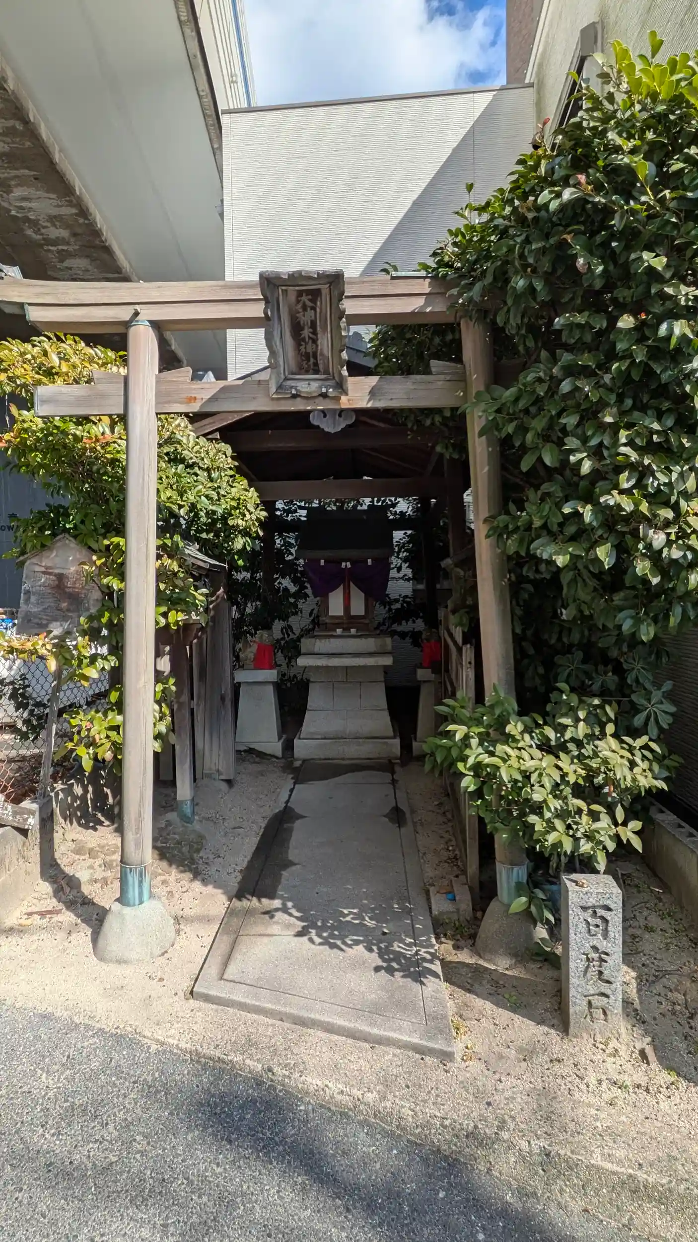 気が付けば吹田市。GoogleMapにてお見掛けしてお詣り。名神高速の高架下に位置しひっそりと佇んでおられました。かつて大木があり、神木と崇め敬われていたため大神木神社らしい。Wikipediaによると元伊勢伝承地の一つらしい。ネットで調べていると社殿の裏に「大神木宮跡」の石碑があるらしい。もともとはそれなりに大きなお社だったんでしょうねぇ・・・。御祭神は大神木神とされているが由緒からすると豊受大神のことなのかな?