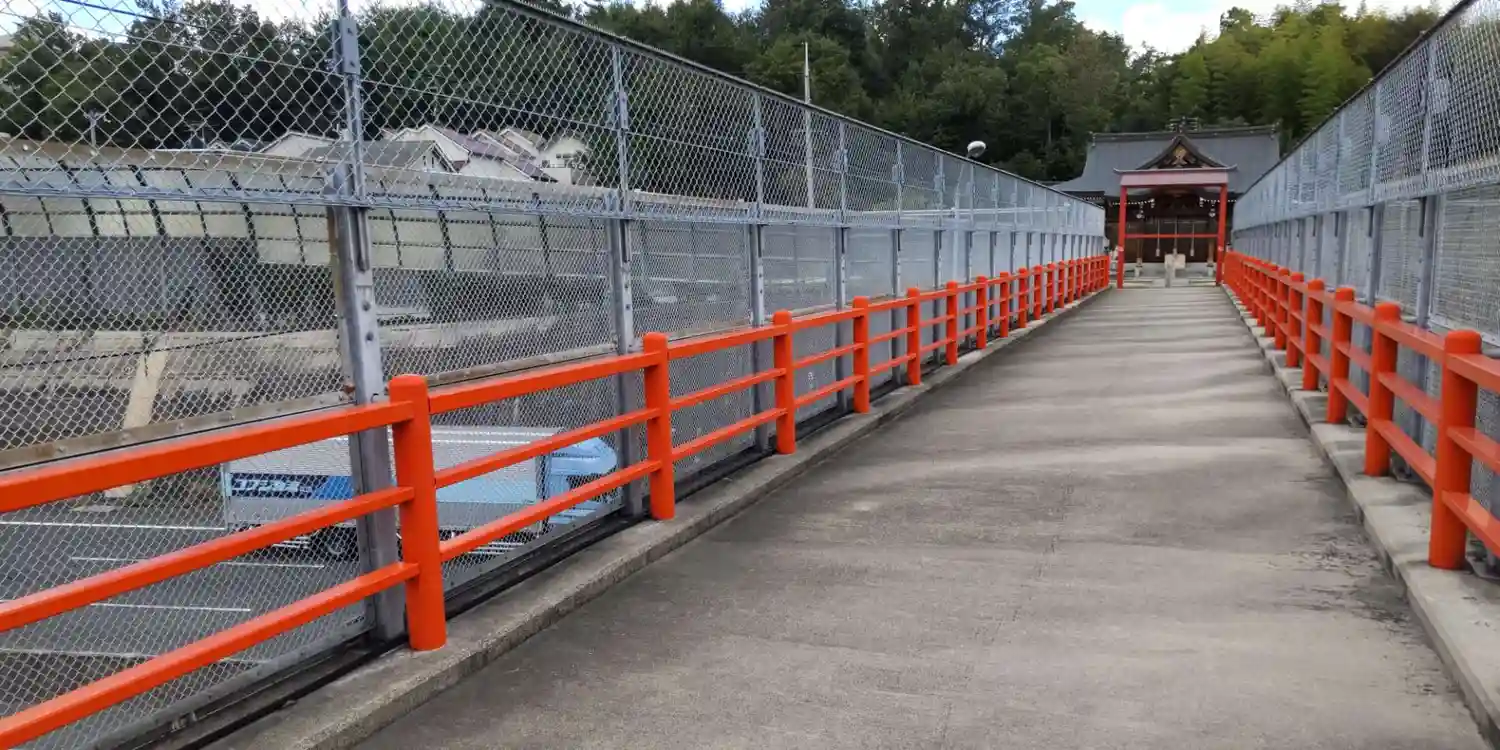 高速道路の上を通る珍しい参道です