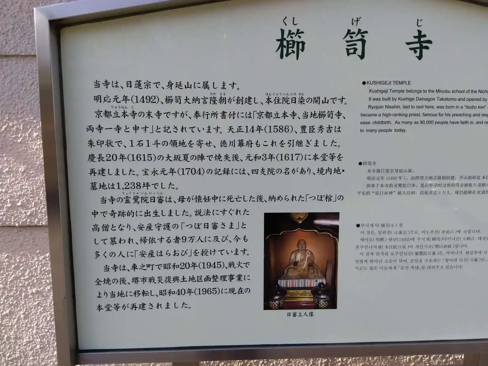 堺市堺区櫛屋町東4丁の日蓮宗櫛笥寺卍
