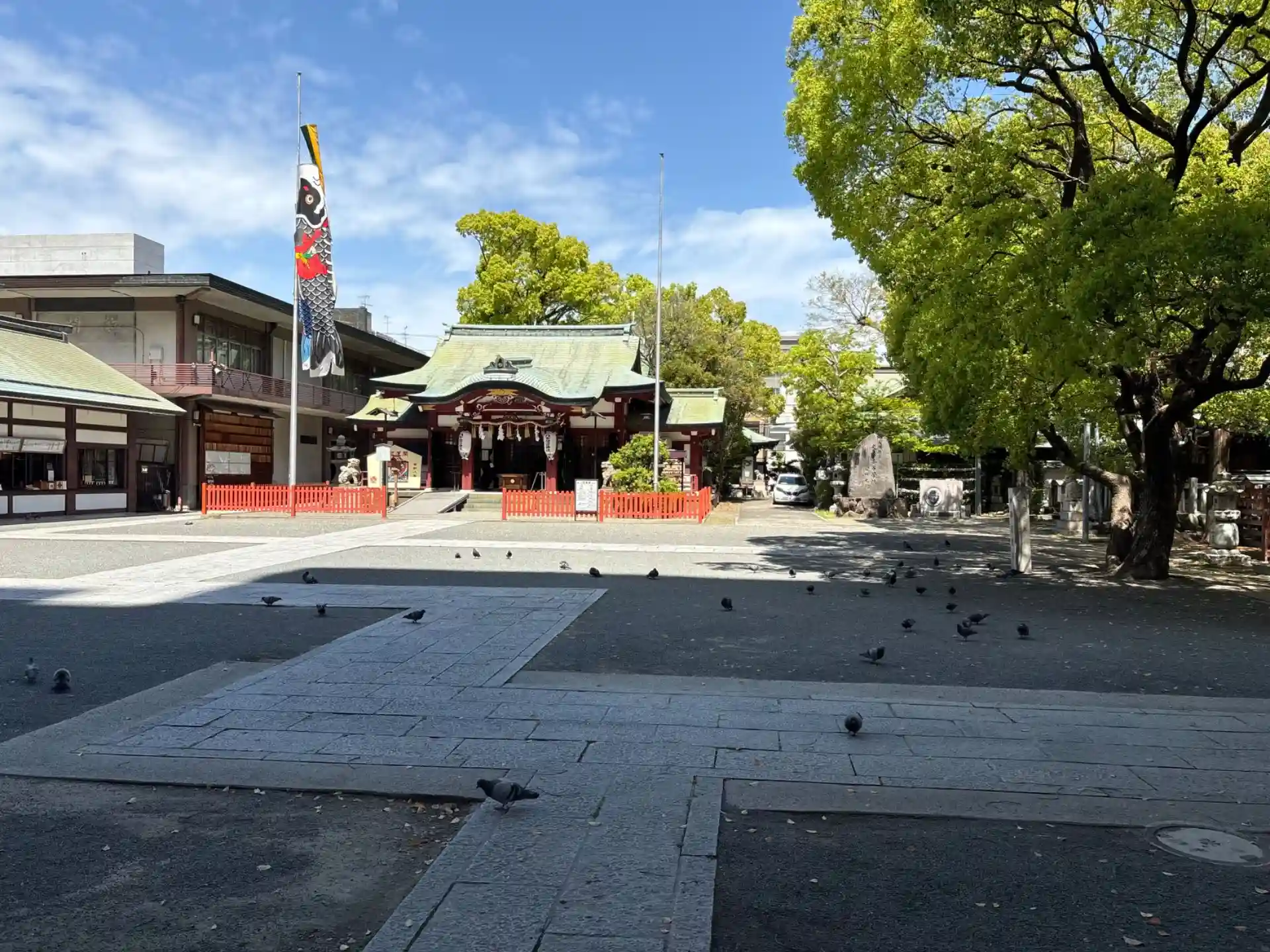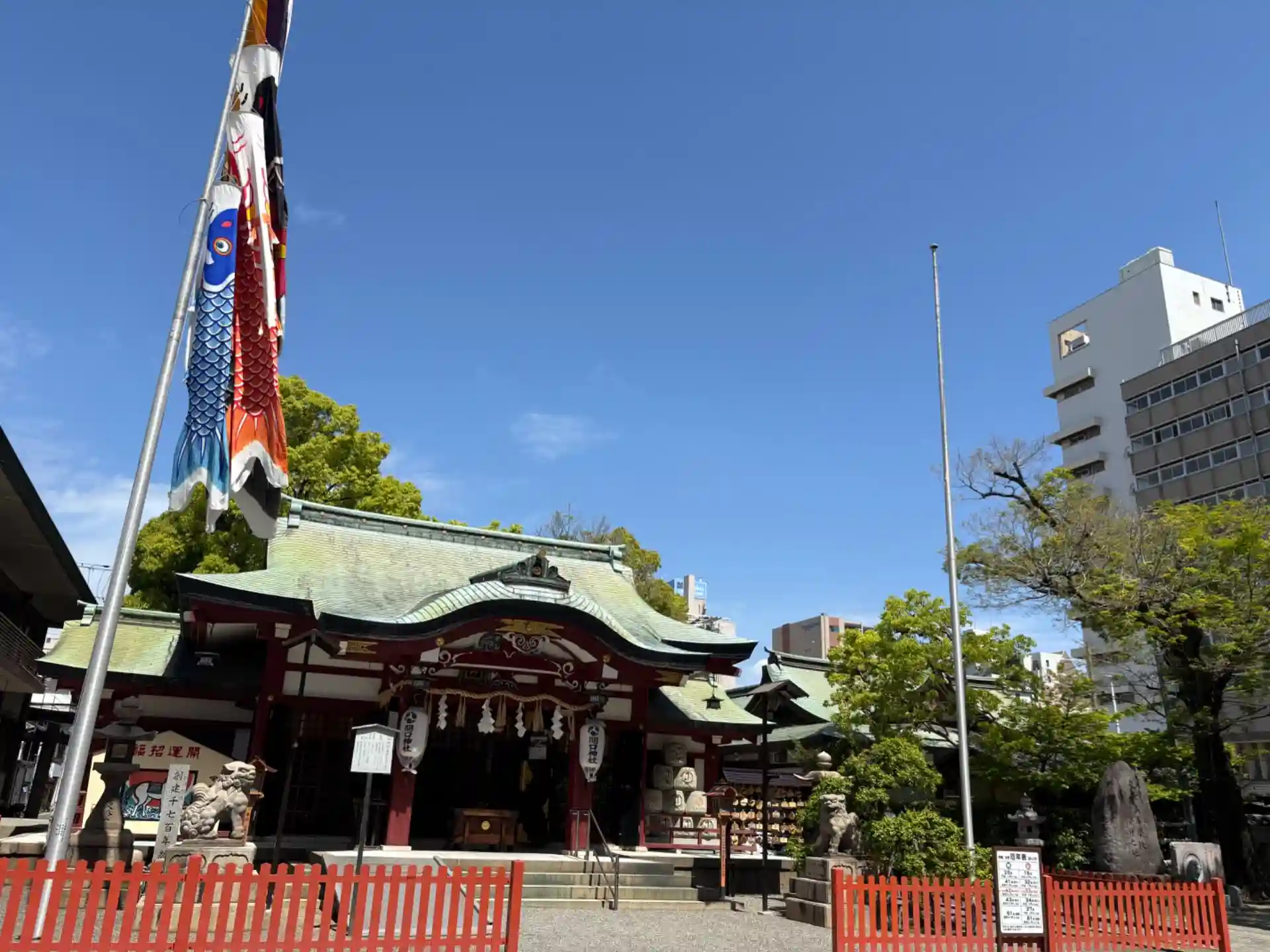 拝殿前には鯉のぼりが上がってました。