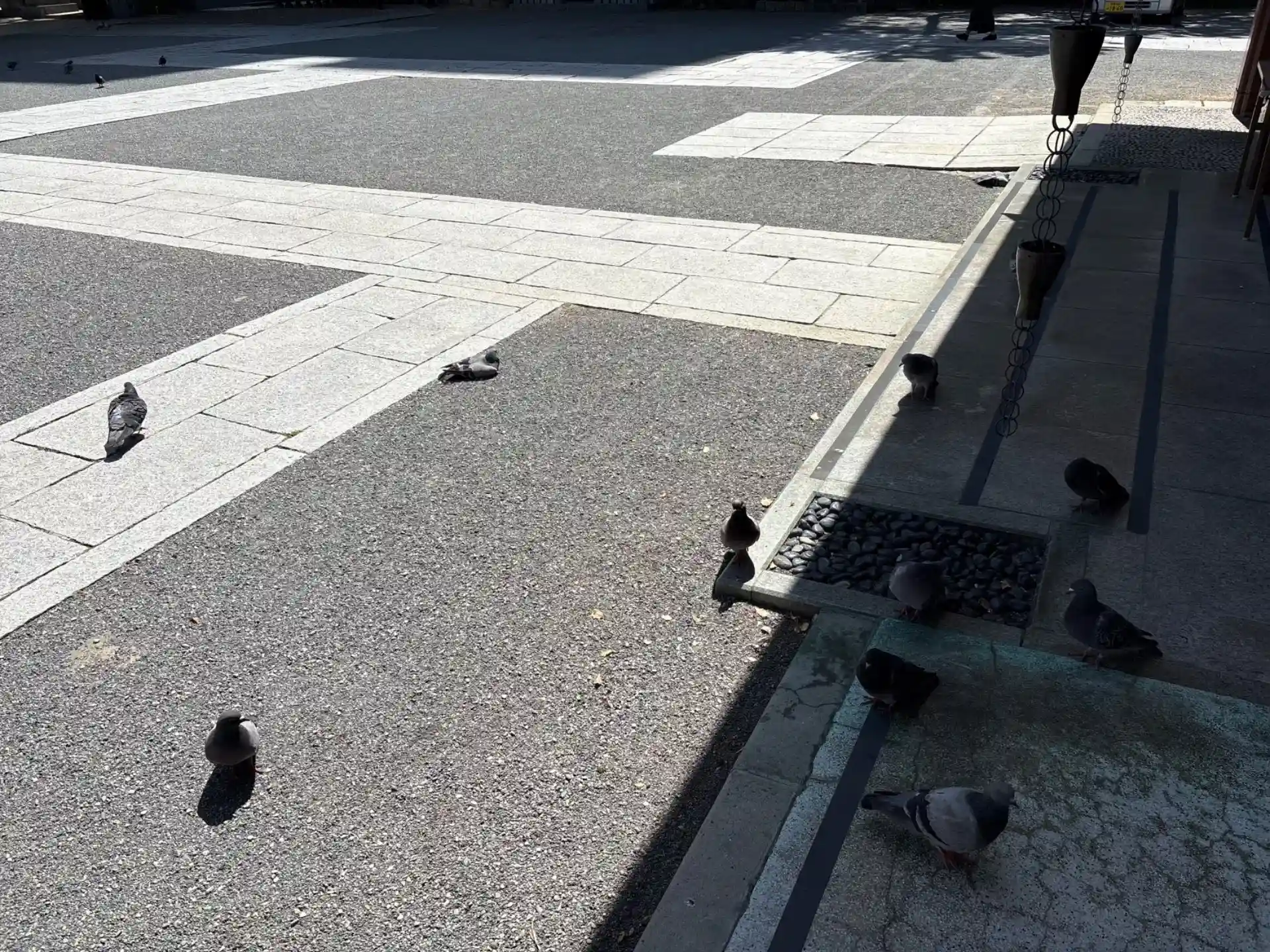 気温高めの日で鳩は日陰側でくつろいでました。