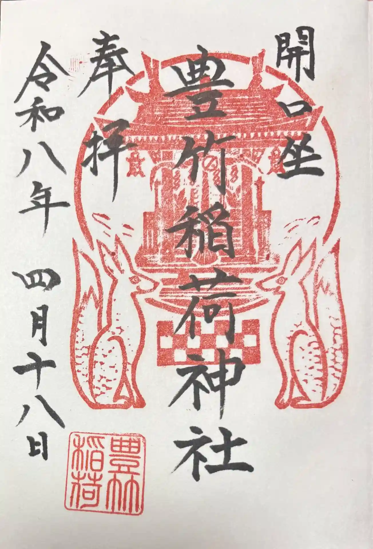 豊竹稲荷神社の御朱印帳お願いしましたら最初の項に豊竹稲荷神社の御朱印が書き入れていただいてました。