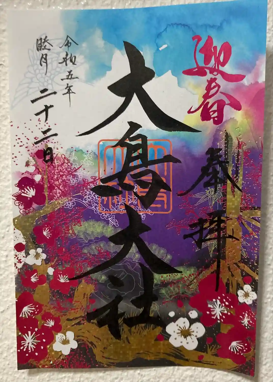 毎月楽しみにしている大鳥大社の御朱印。一月はお正月仕様でとても美しく縁起の良いデザインでした。