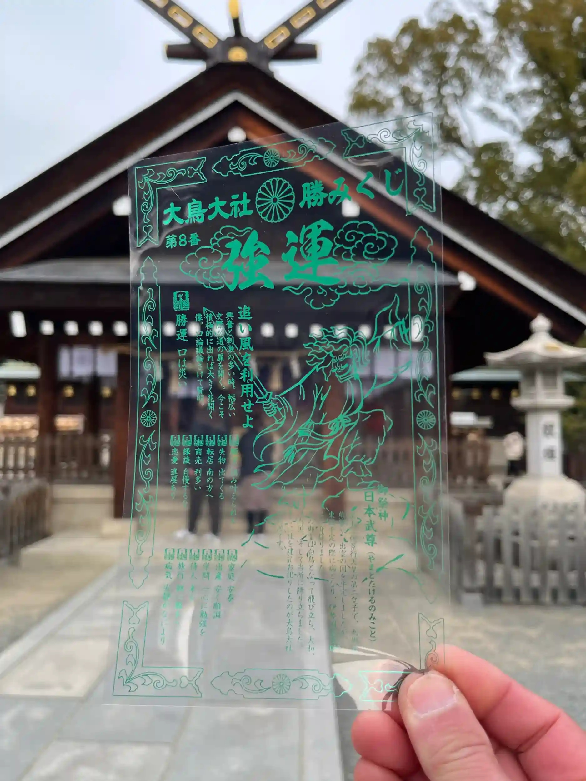 一の宮巡りで伺いましたがSNSでバズってる透明🫥なおみくじのある神社⛩️で参拝者が沢山居ました😊根上がりの大楠や奥宮もあり御朱印も色鮮やかで気分が上がる⤴️神社⛩️でした😆透明おみくじもゲット出来ました(2回引きました😅)