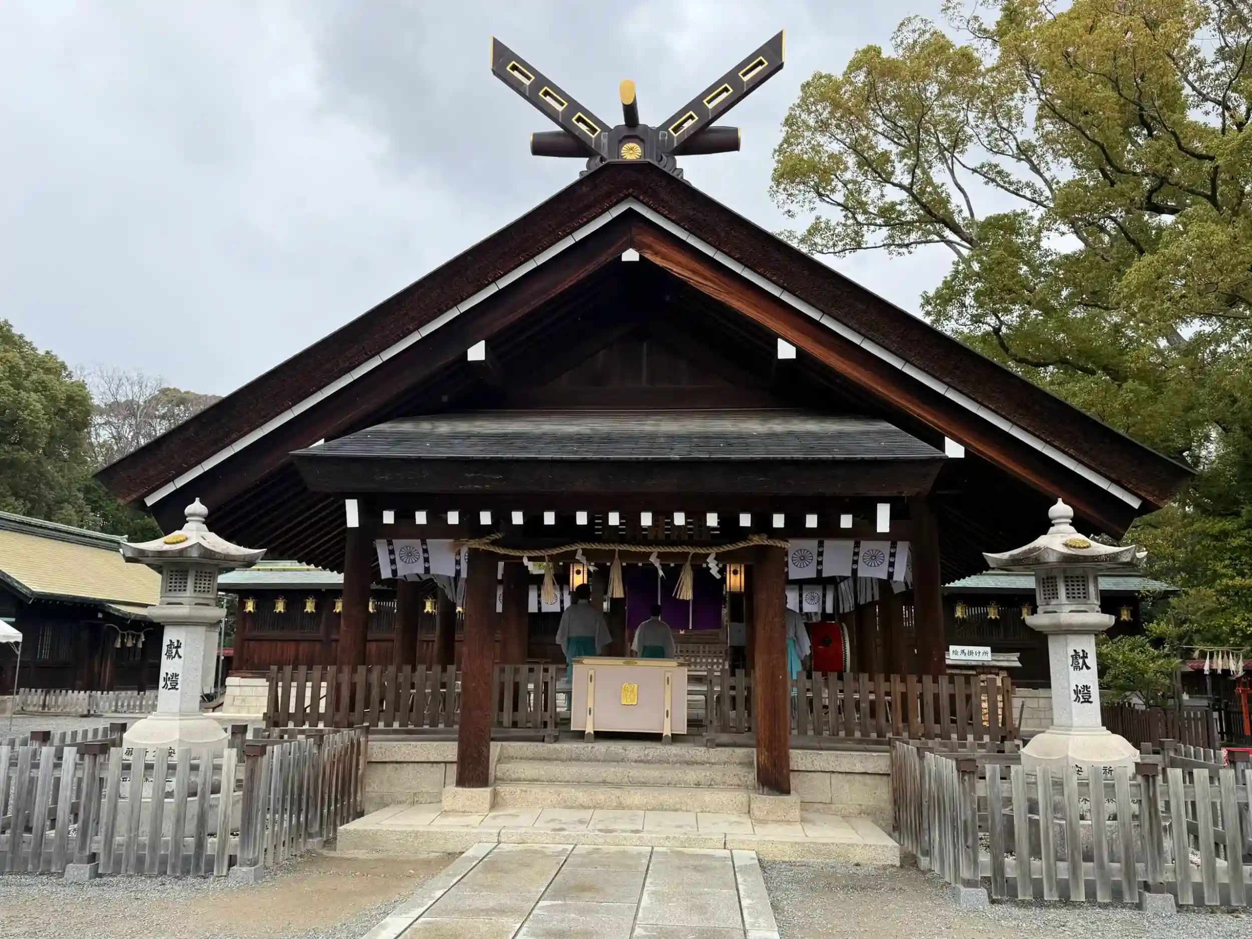 朝イチに参拝したので、神職の方々が朝拝をされていました。