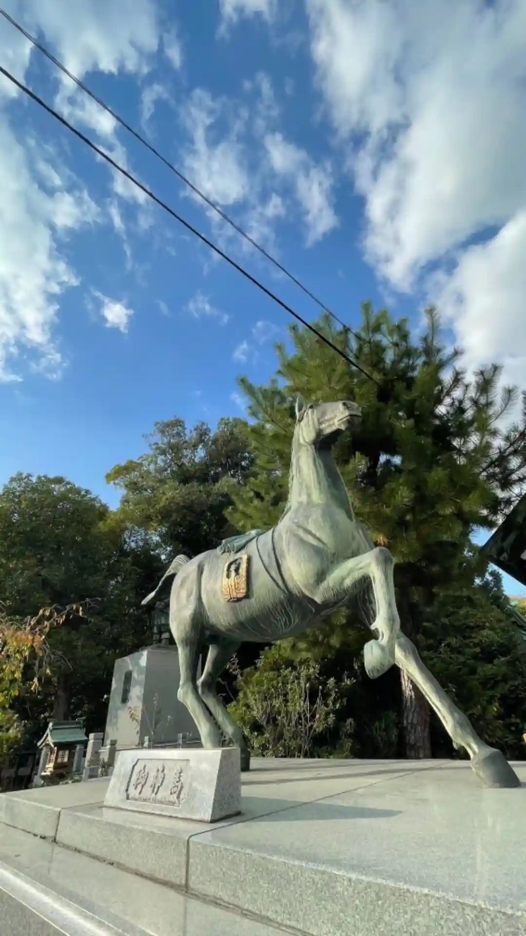 日本武尊の像の横にはご神馬の像が・・・平清盛、重盛父子が愛馬を奉納したとも伝えられています。