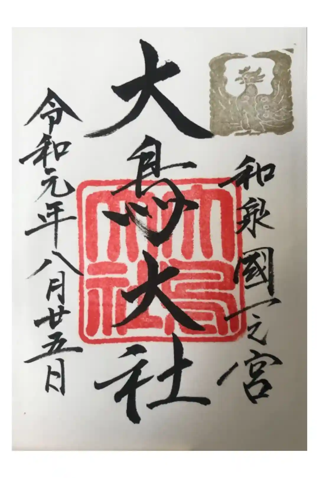 金で鳳凰が押され迫力のある大社の御朱印。