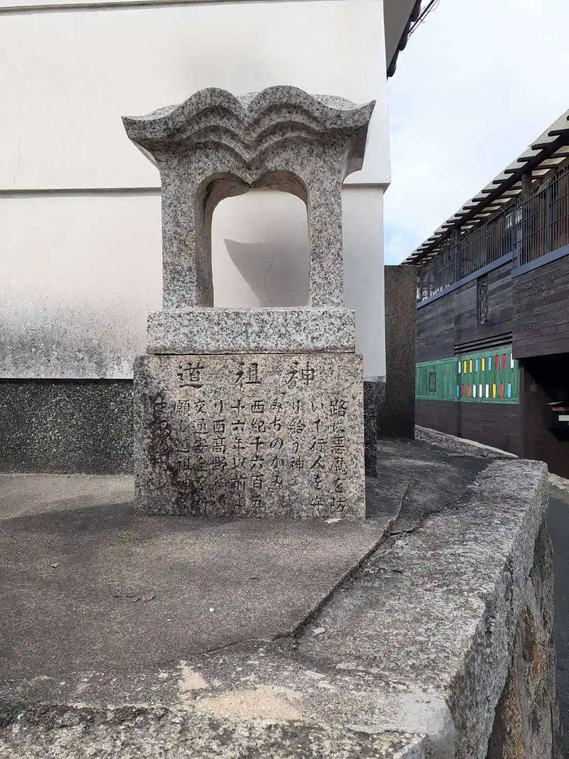 寺院外壁角に建つ『道祖神』