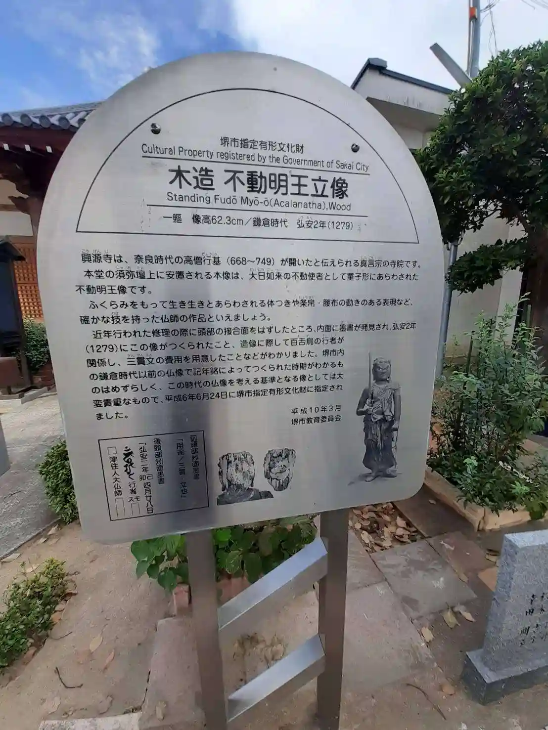 本堂の須弥壇に安置される本像は1279年、鎌倉時代に造られたもので、大日如来の不動使者として童子形にあらわされた不動明王像。