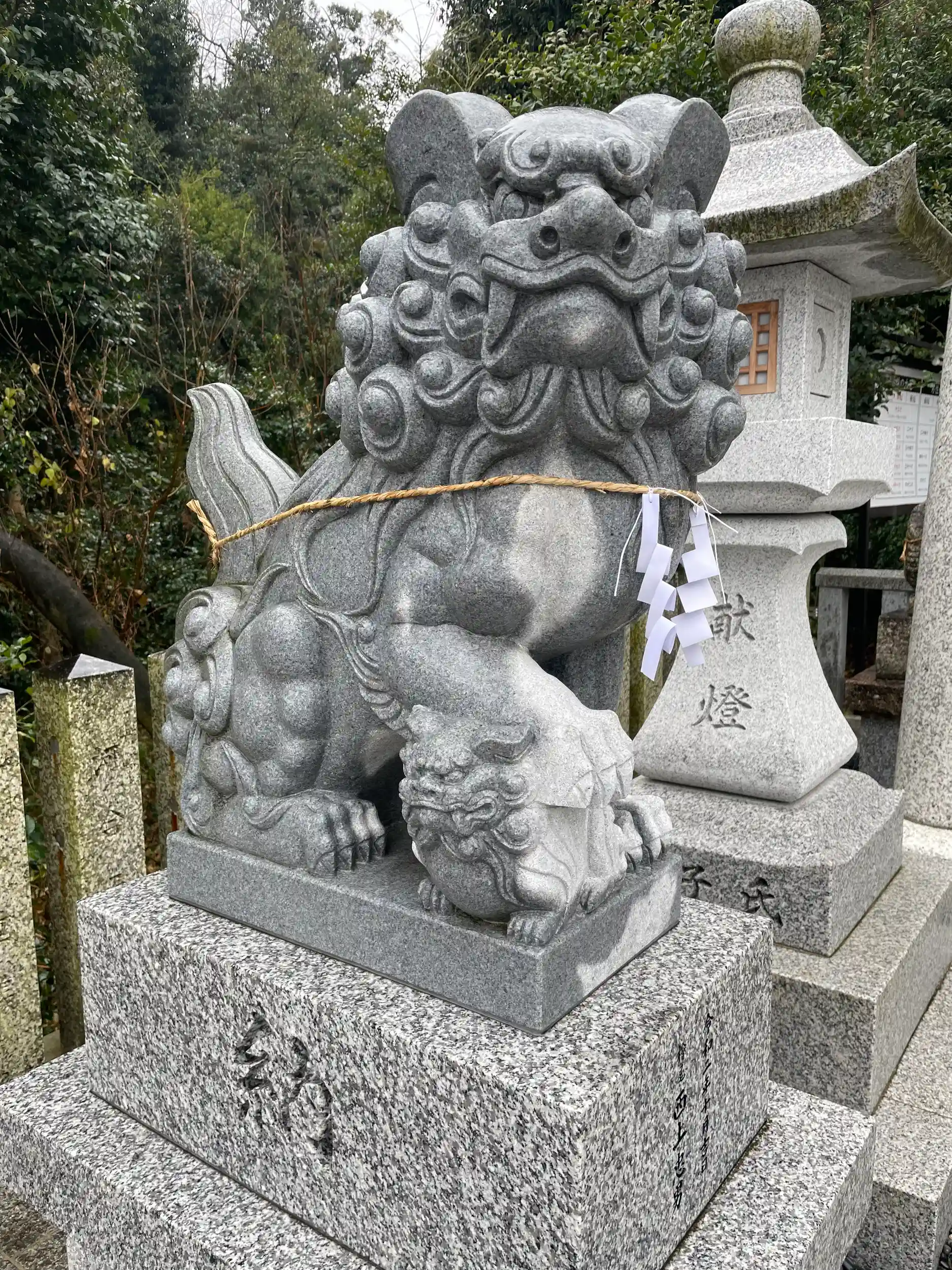 おみくじ結びされてた狛犬さん