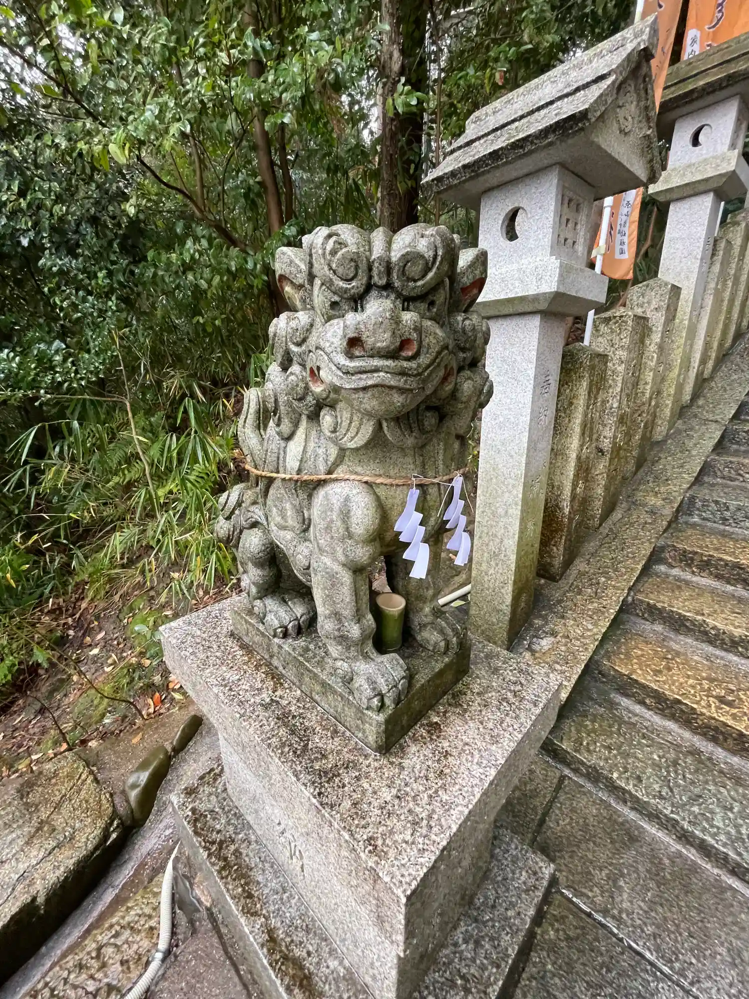 おみくじ結びされてた狛犬さん
