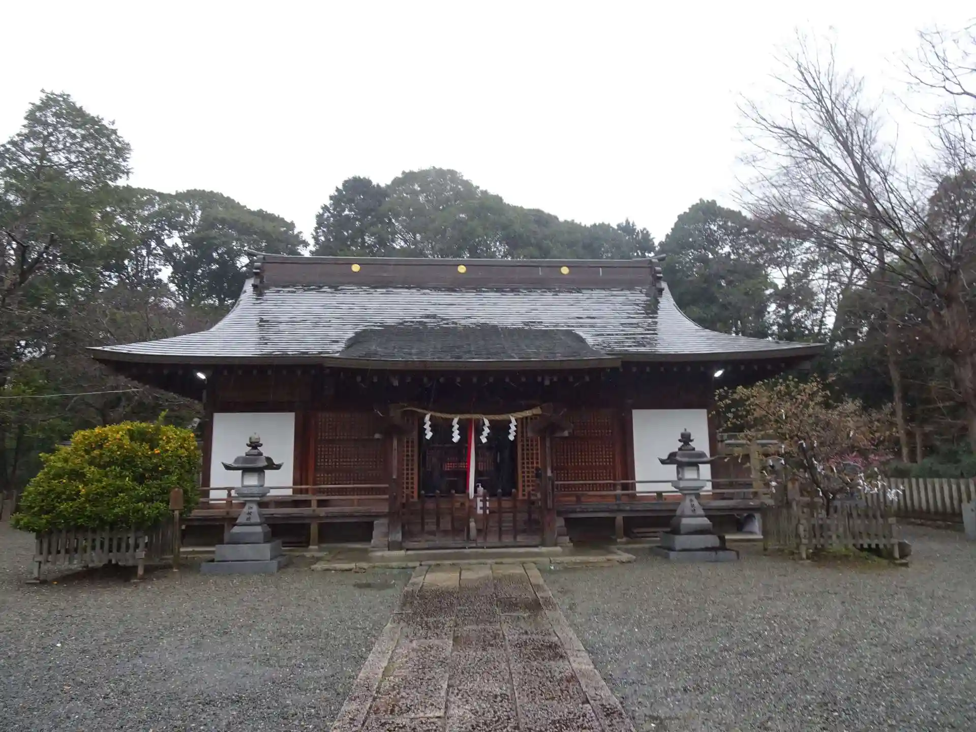 意賀美神社から、車で数分で到着しました。鳥居の脇には、御神木の椋の木がせりだしておりました。拝殿の奥の朱色の本殿は、国宝指定だそうです。また、境内の一角には奉納された、紅梅白梅しだれ梅が、ちょうど見ごろとなっており、雨の中花を開いておりました。