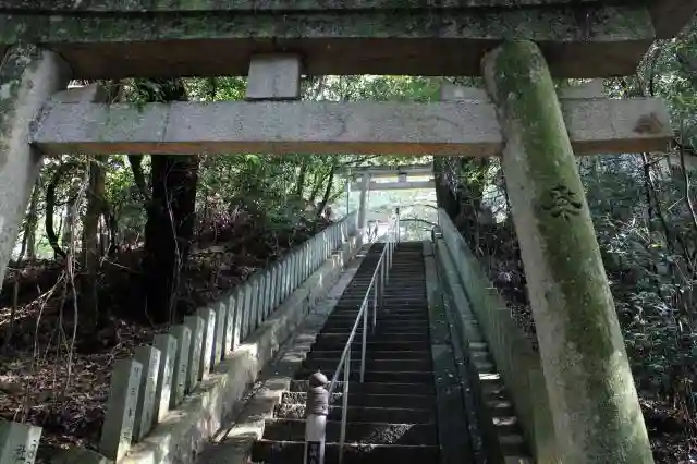 陽成天皇が、元慶8年(884) 大かんばつのとき、菅原道真に降雨を祈らせたことから「雨降り大明神」とも呼ばれ、社殿の前を流れる津田川の上流には滝があり、日照りの時にこの水をさらえ神前に祈ると、必ず雨が降ったことから「雨降りの滝」と呼ばれています