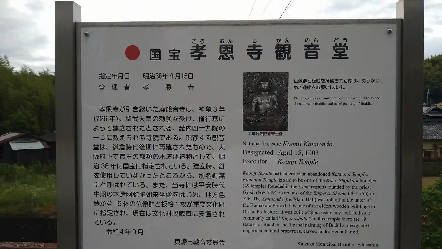 孝恩寺と国宝指定されている観音堂はもともとは別の寺院であった。