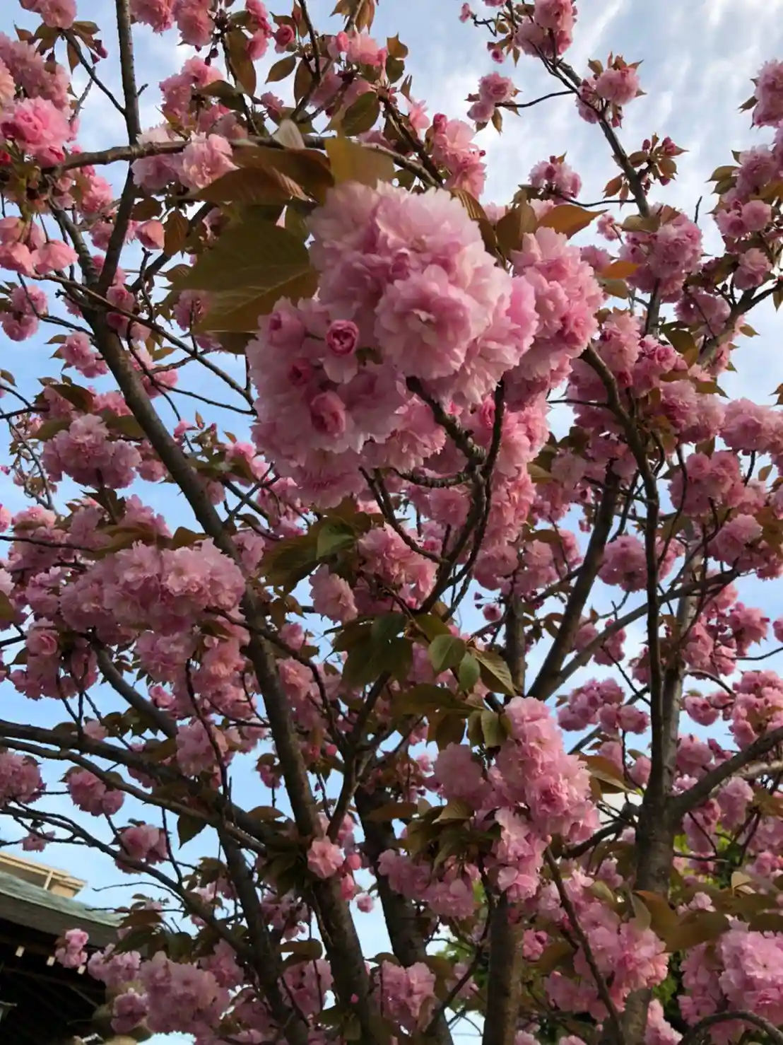 本殿前の八重桜が満開となりました。