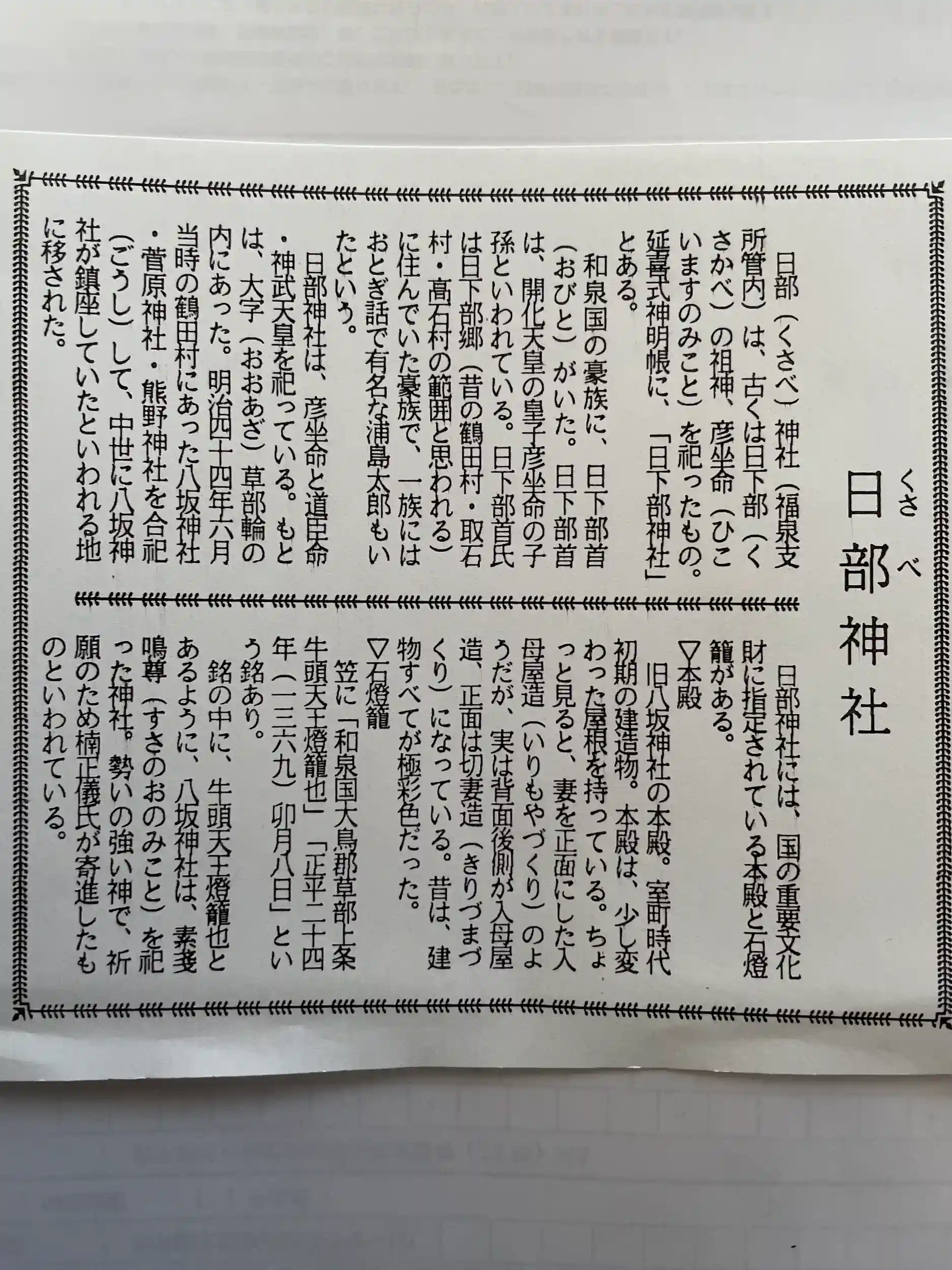 由緒書です。