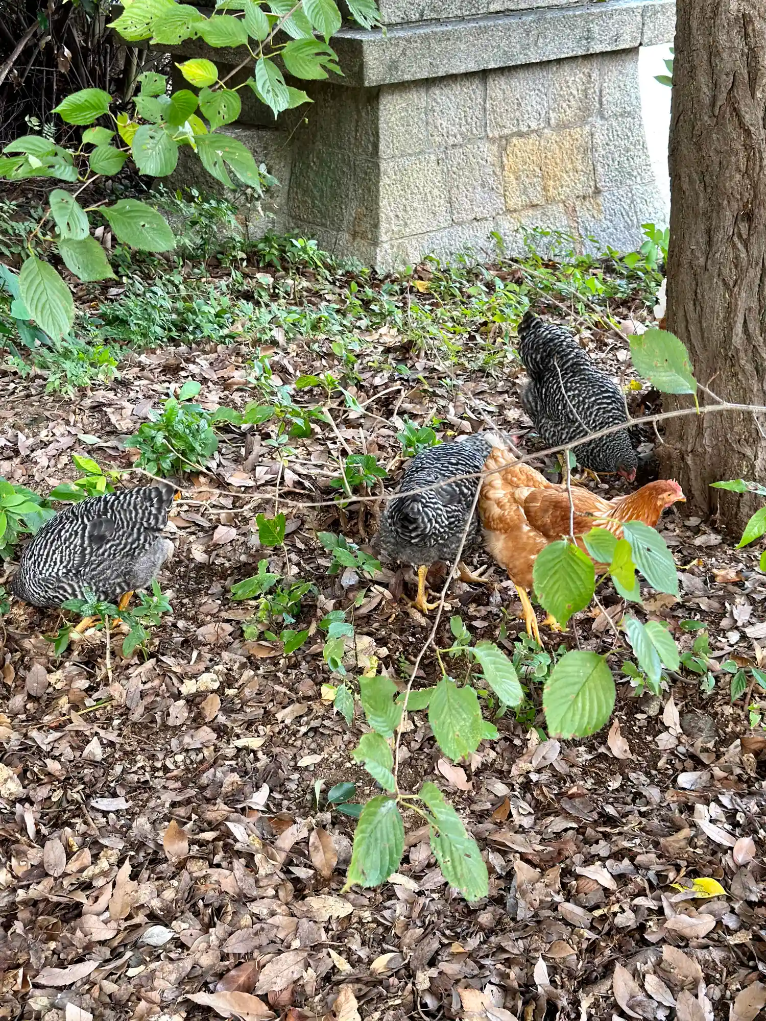 落ち葉の下の虫か何かを一生懸命に