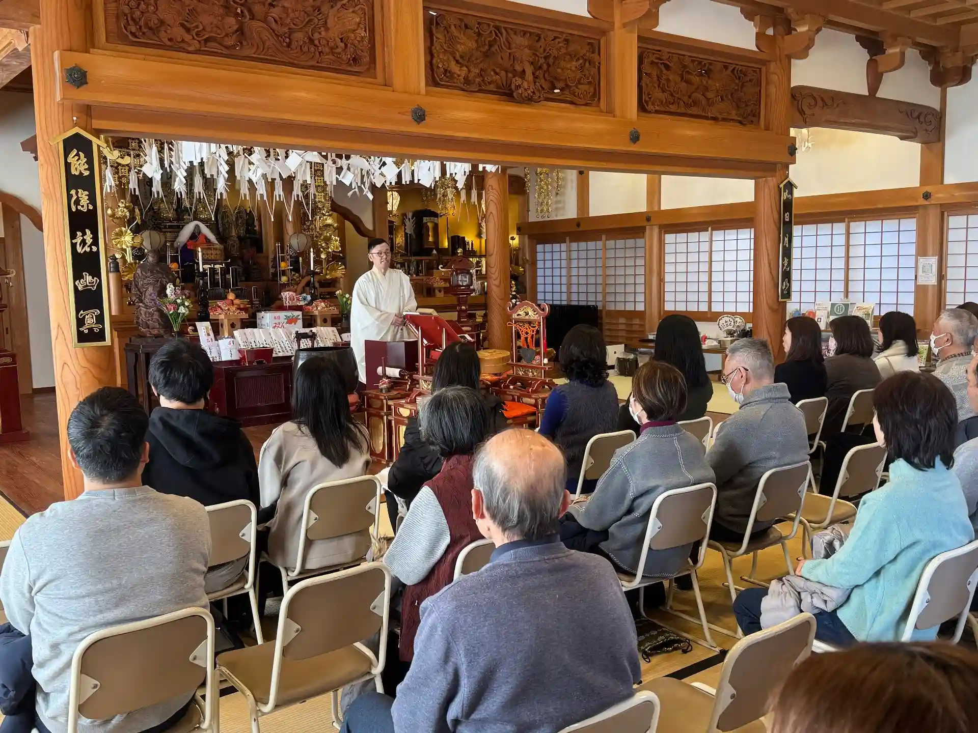 終了後は、15分ほどの御法話の後、お菓子まき、福引抽選会、厄除けおぜんざいのお振舞いと、参列者の皆様には、思い思いに楽しんでいただく事ができました。