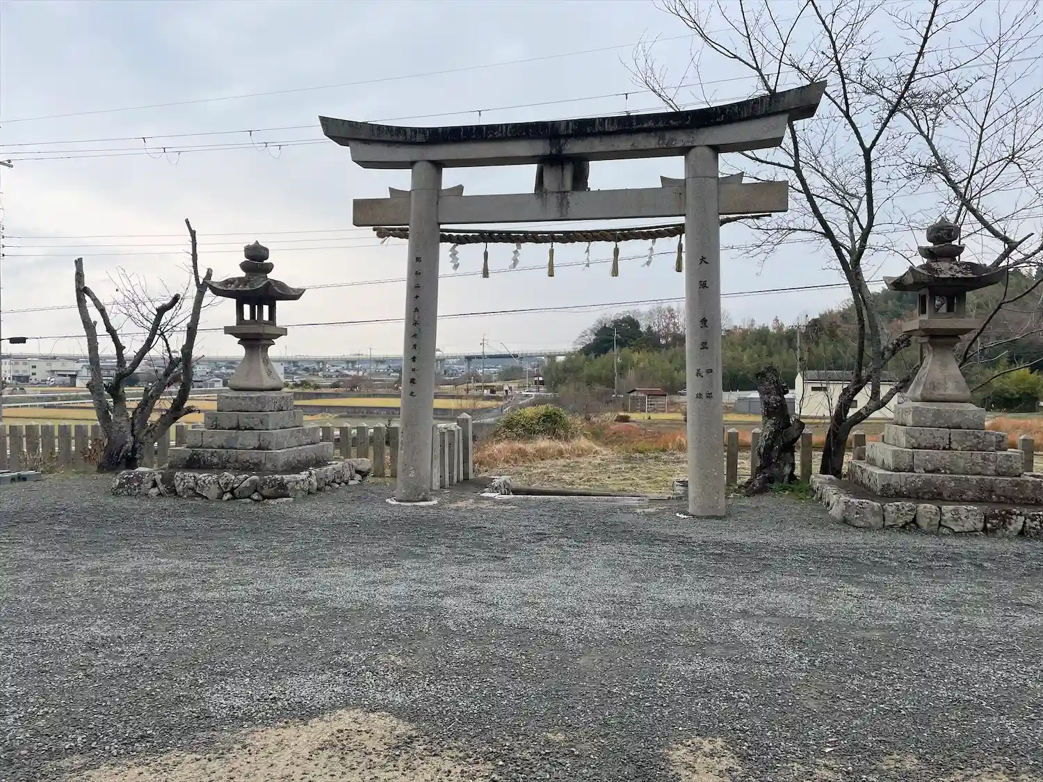 小高い山の前に鳥居。