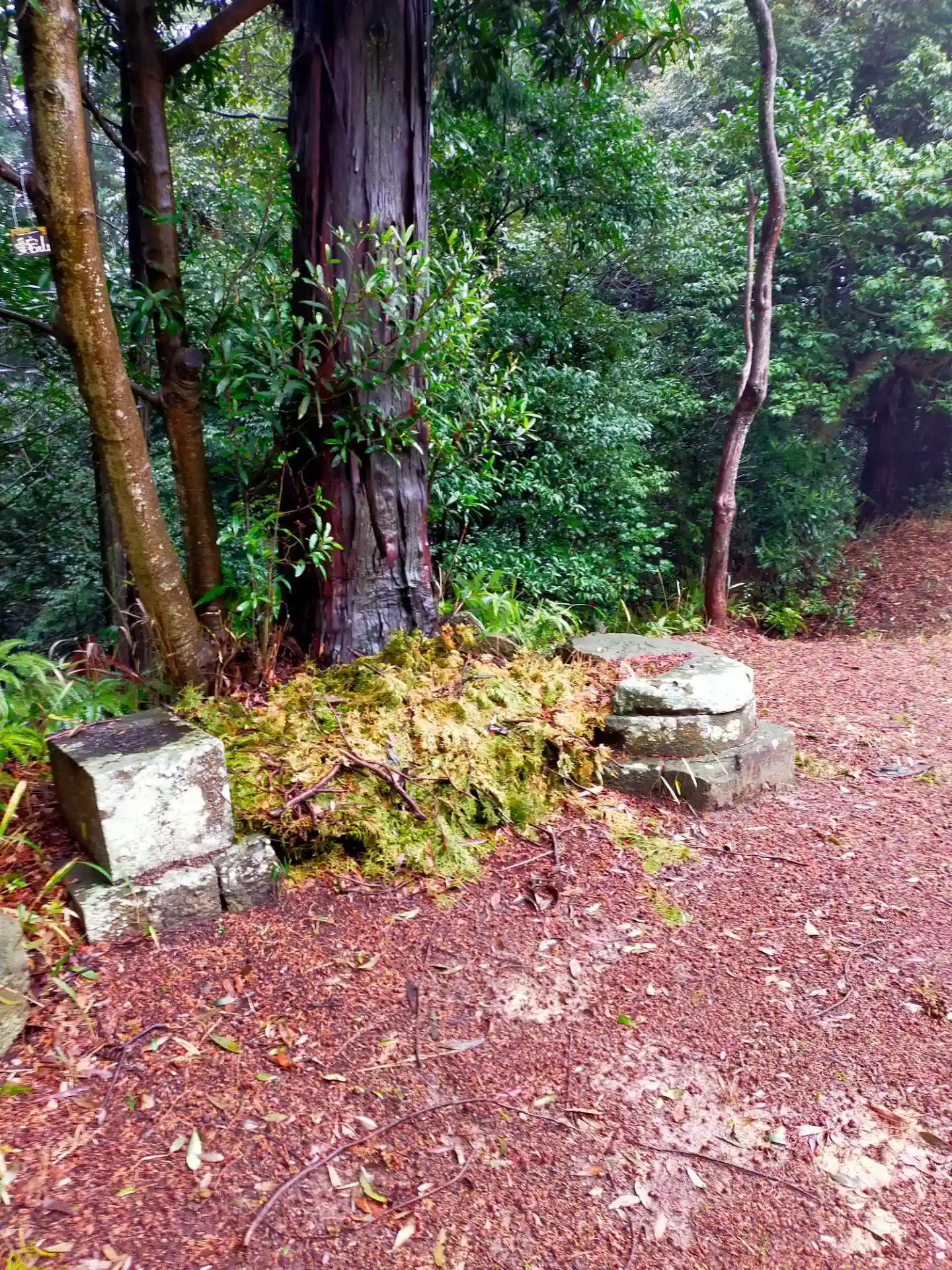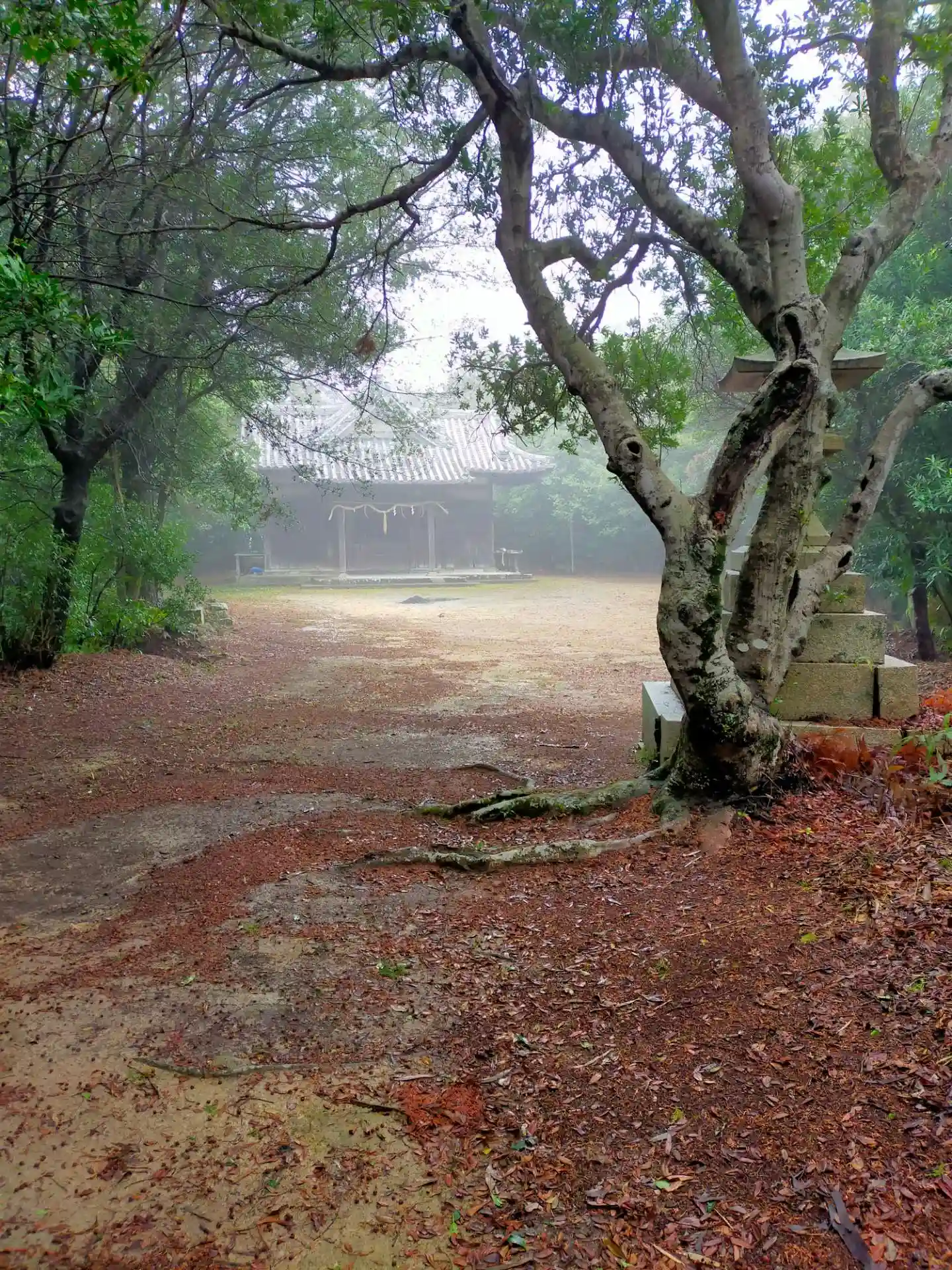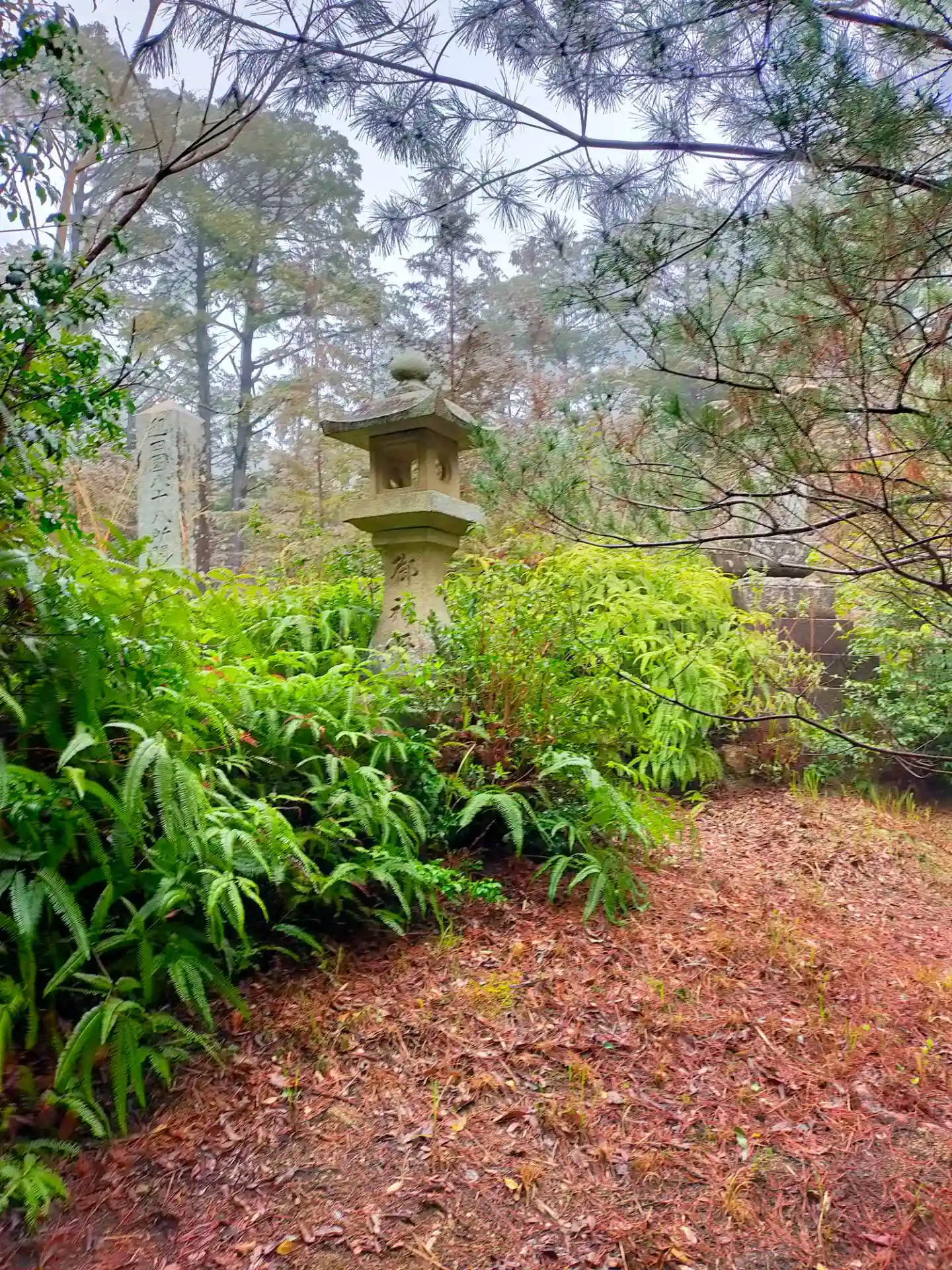 林昌寺にある鳥居をくぐって登って行くとあります。霧雨の中で、神秘的な雰囲気でした。