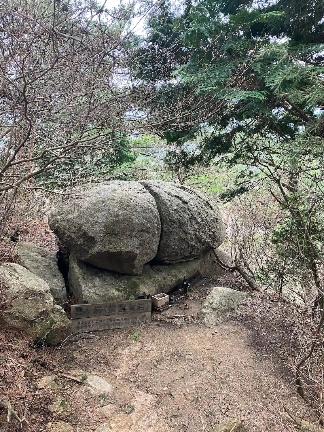 六甲山頂尾根付近に位置し、近くには六甲山カンツリーハウス敷地内に天穂日命の磐座もある。仰臥岩、雲が…