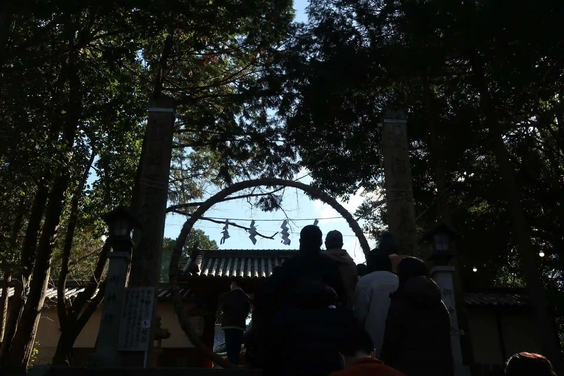 日根神社の参道へ行くと長蛇の列。
