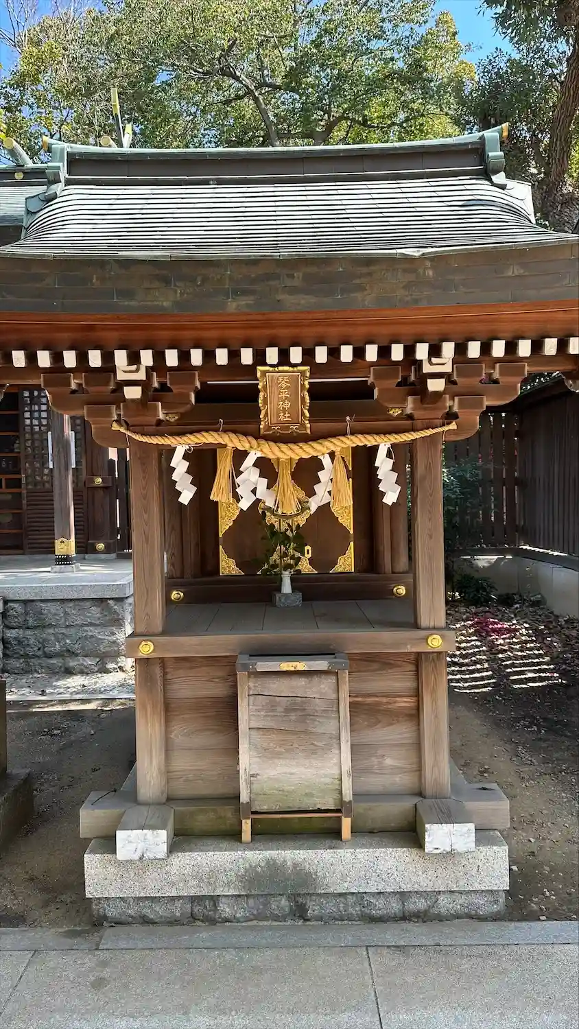 「琴平神社」の右側(南側)には四社の境内社が一つの長い覆屋に一社ずつ納められています。