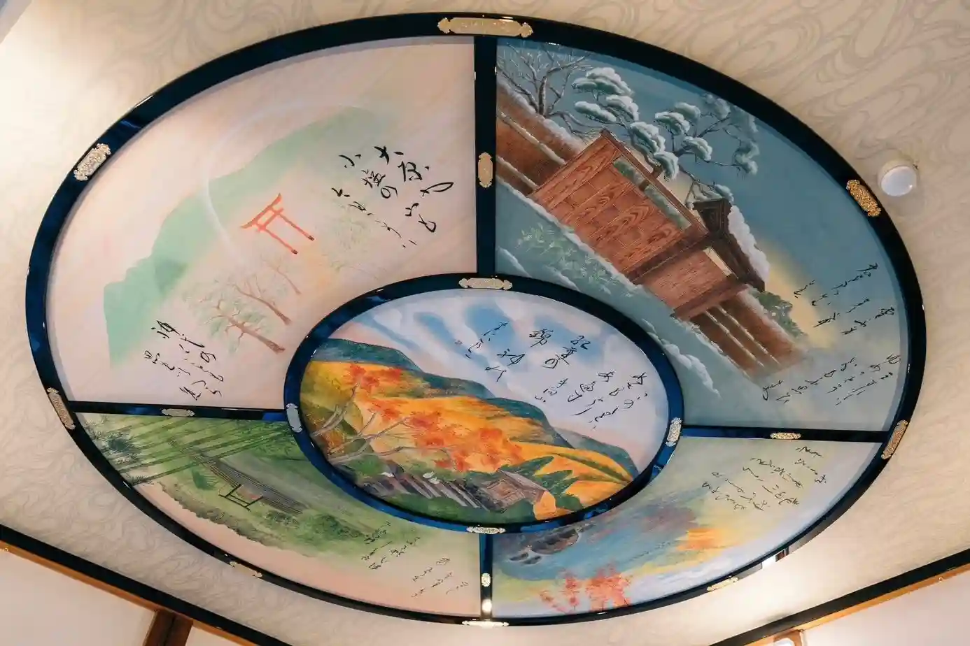 ゆかりの和歌の花天井(拝殿北側)