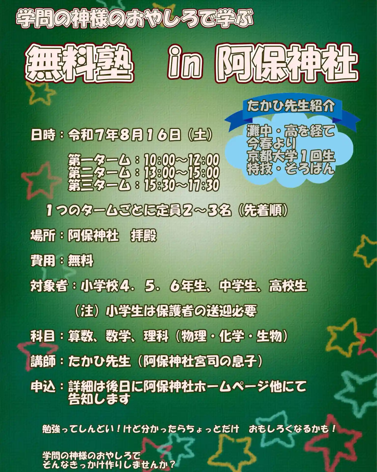 【予告編‼️】無料塾 in 阿保神社 開催のお知らせ