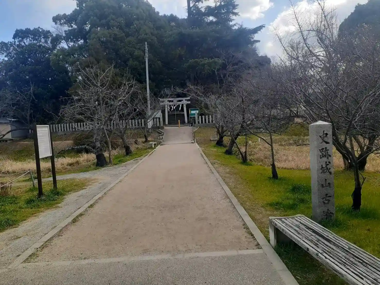 世界遺産に登録されている「古市古墳群」を構成する古墳のひとつで、国の史跡にも指定されている「津堂城山古墳(つどうしろやまこふん)」の北西部・後円部に鎮座されている神社。
