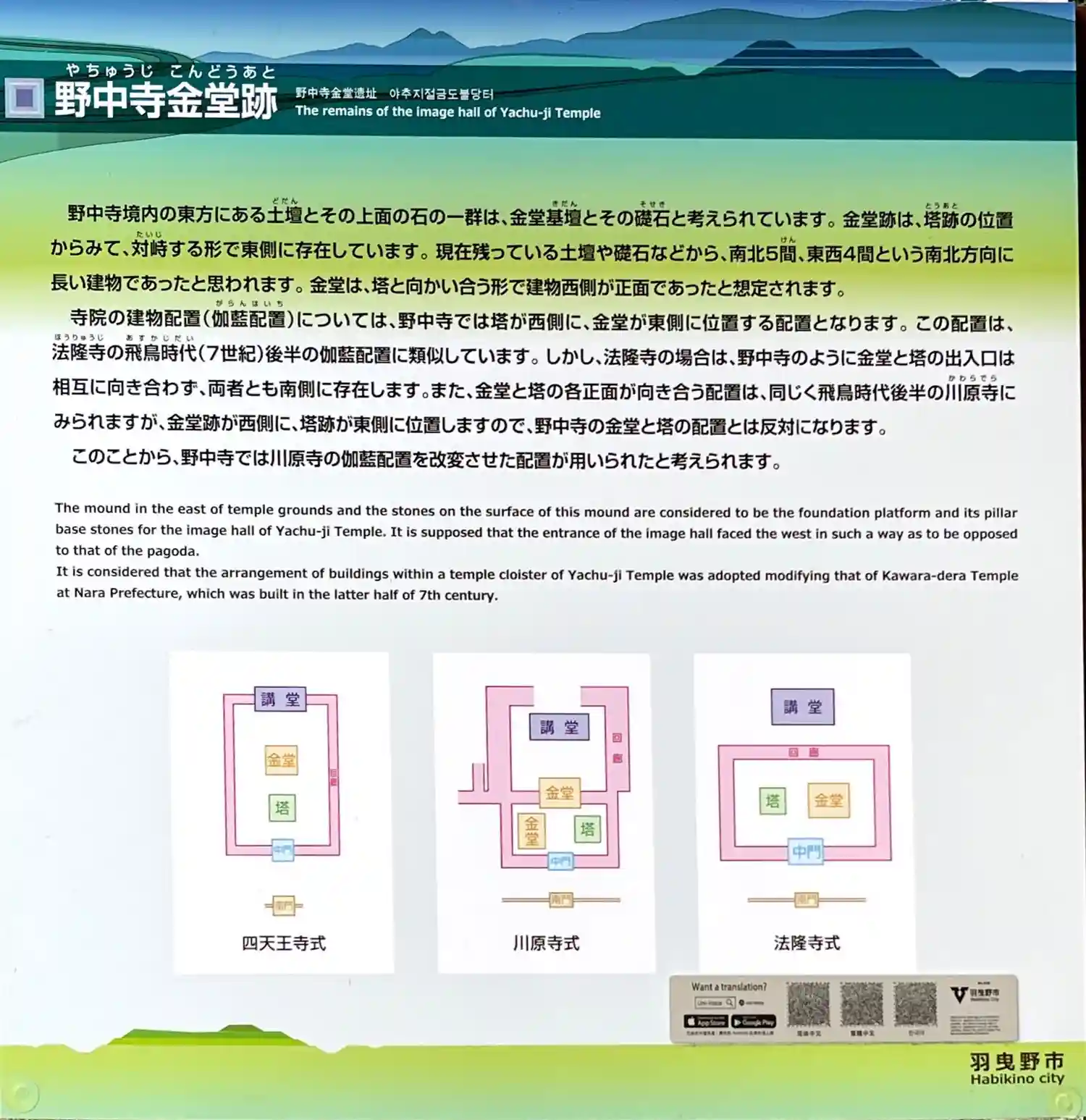 青龍山 野中寺(やちゅうじ, 高野山真言宗, 650年頃) 本堂, 太子堂, 弁財天, 中門, 東…
