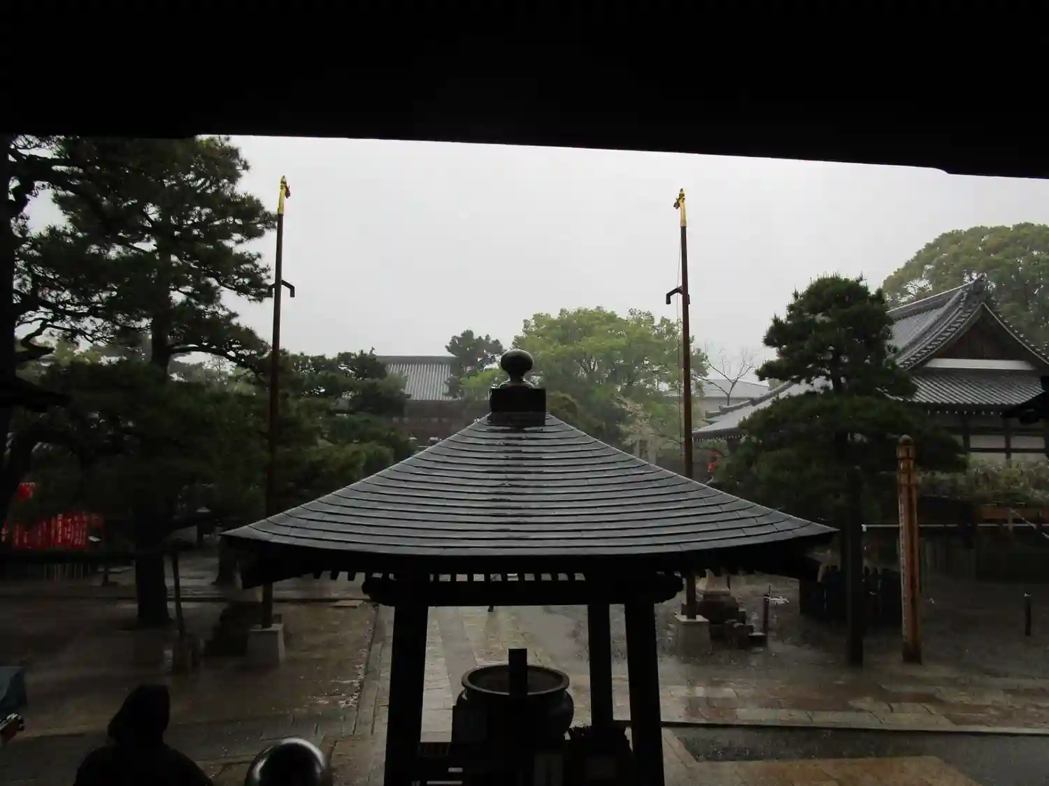 本堂にて雨宿り