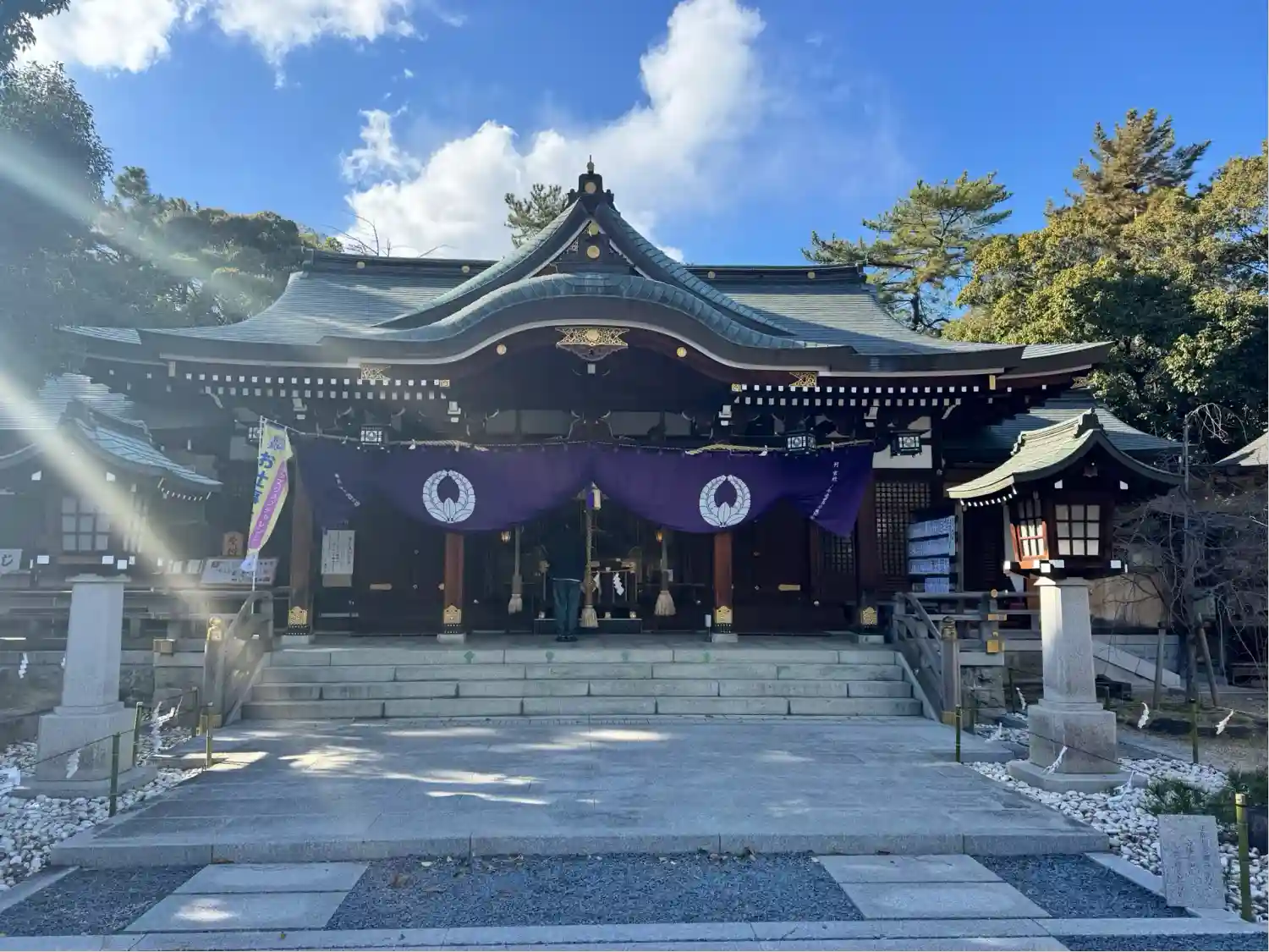 | ご祭神 | 《主》饒速日命,天児屋根命,《配》品陀別命,市杵島姫命《合》素盞嗚命 |