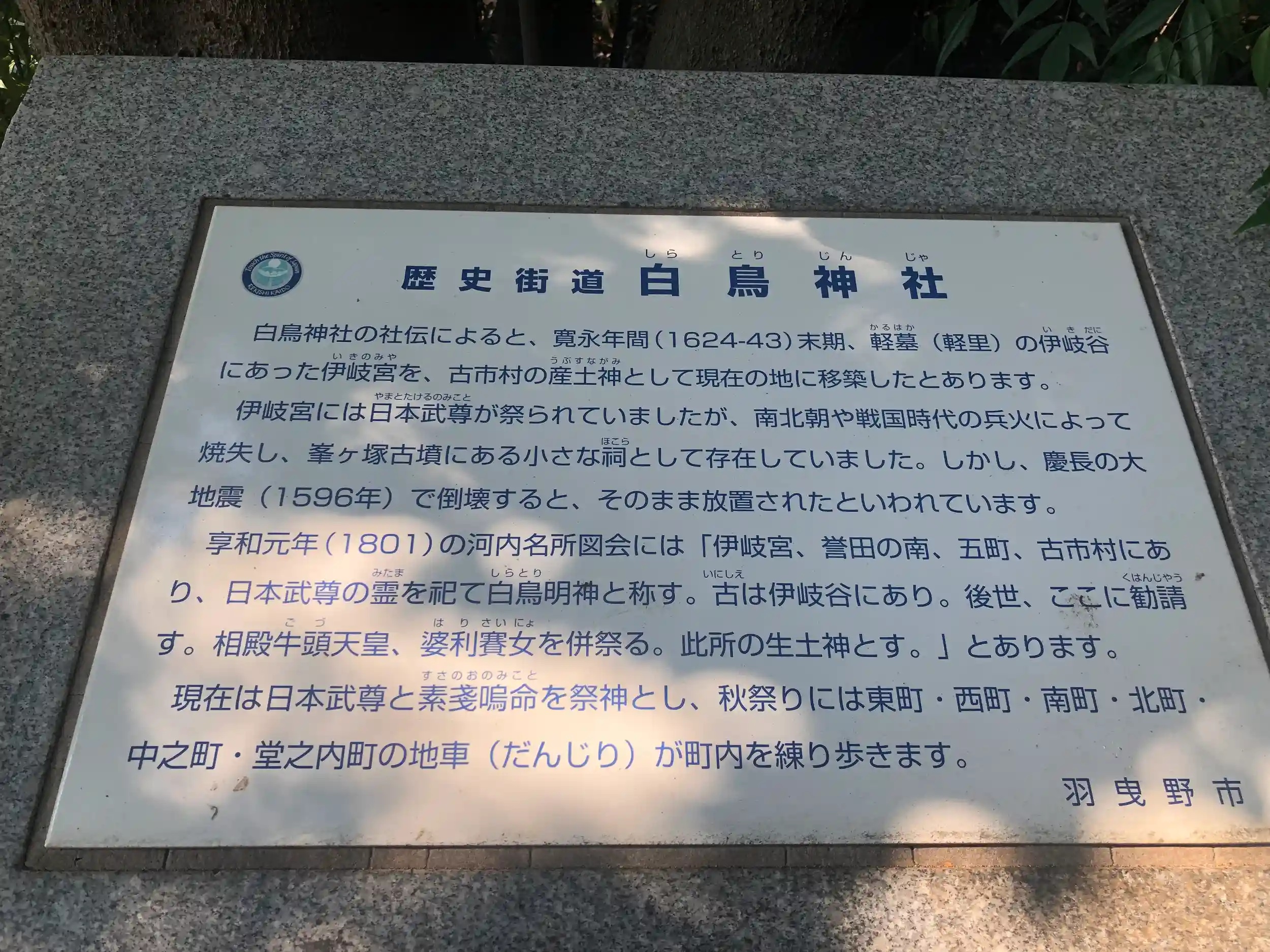 古市駅のすぐ横に観光案内所があり、その真後ろが白鳥神社となります。