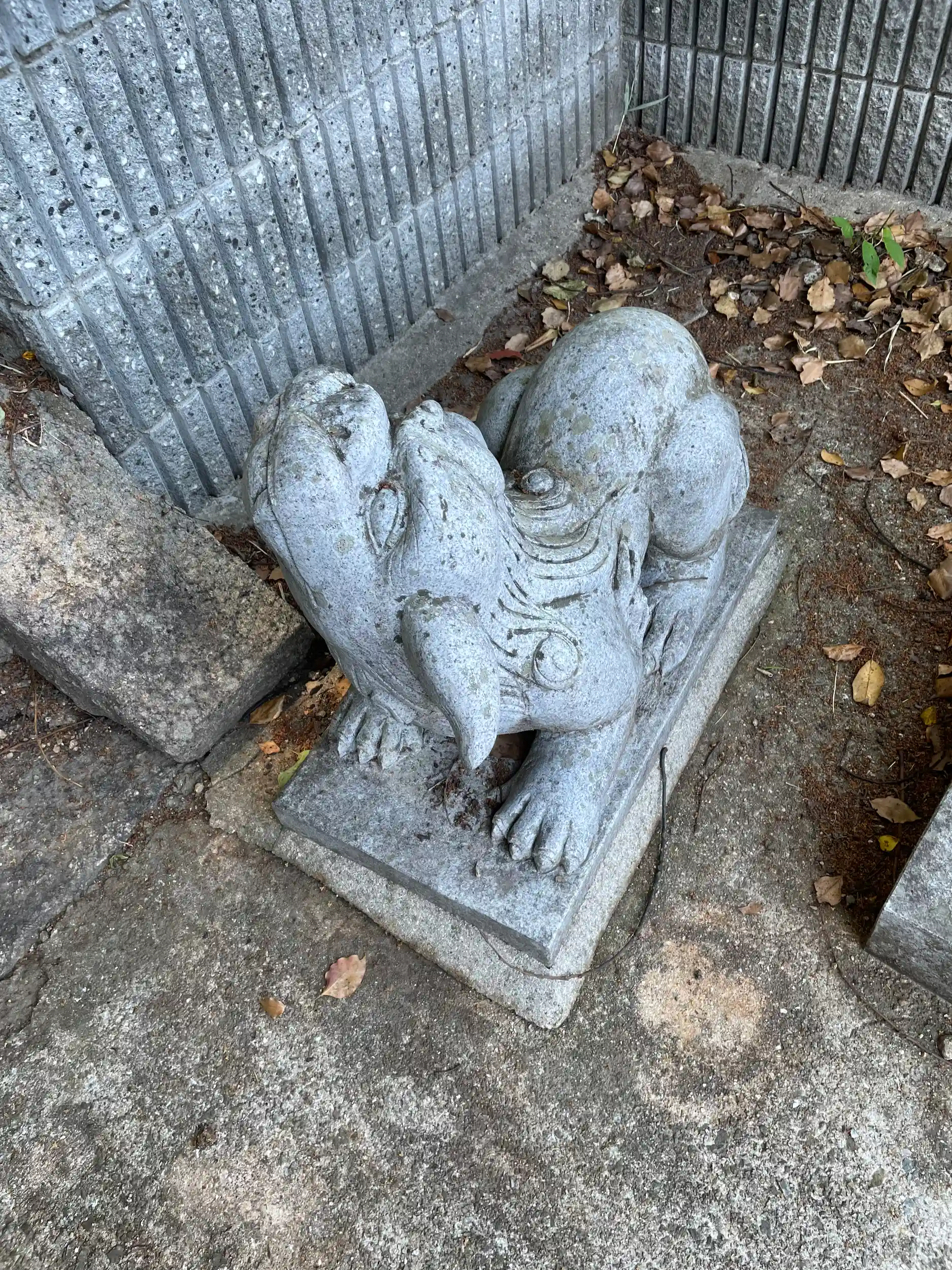 つかまり立ちしてる狛犬さん。。