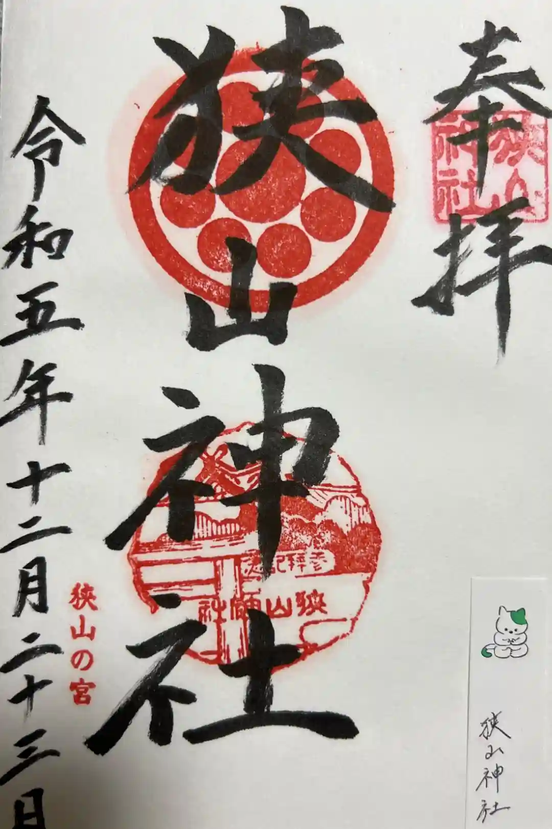 狭山神社の御朱印・御朱印帳