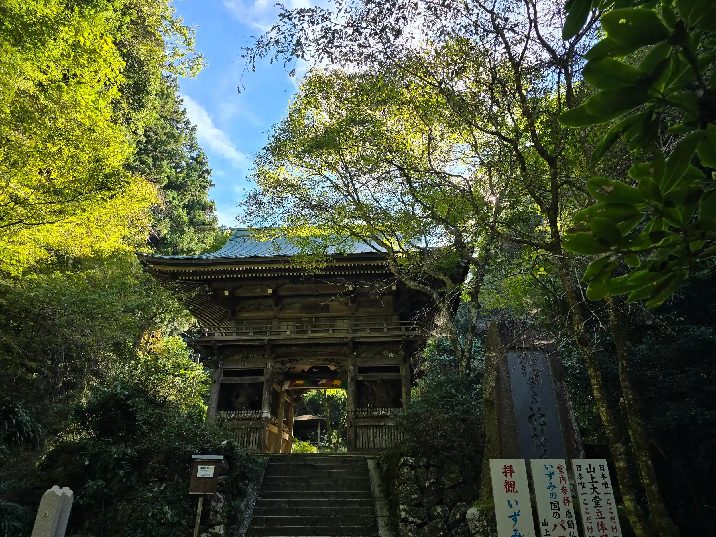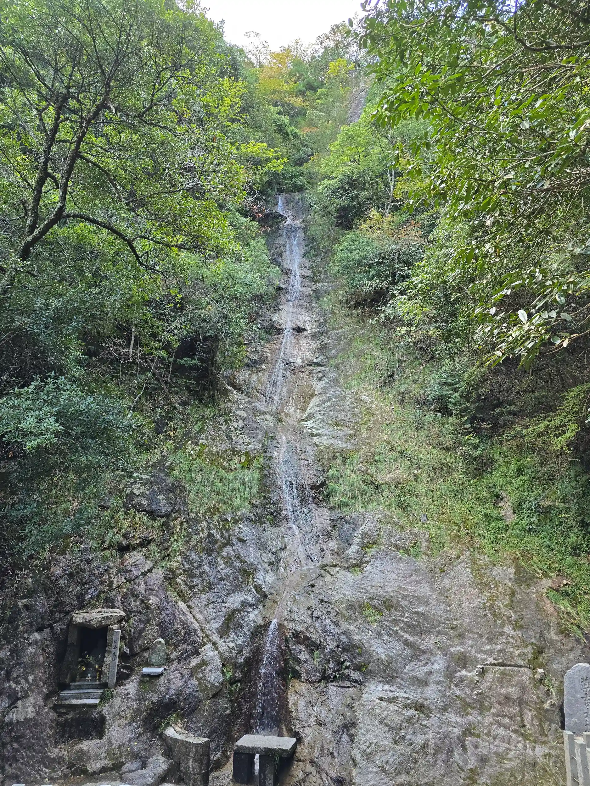御本堂の奥に進むと弘法大師が修行し出家を決意したという満願滝が見えてきます。落差50mで糸を引くように水が落ちてきます。とても美しい風景を暫し楽しませて頂きました(^-^)