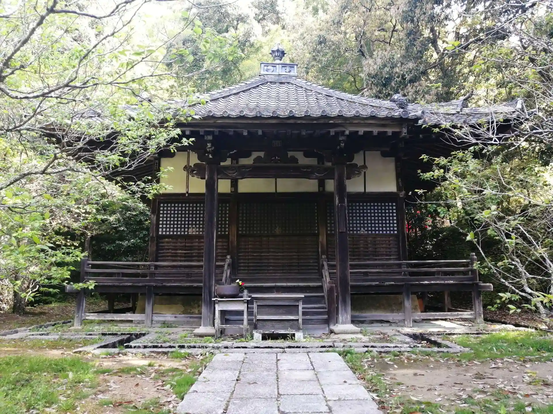 金堂の手前および右手側にはお堂が多数。鎮守堂(訶梨帝母天堂)、建掛塔、弁天堂、阿弥陀堂、御影堂、行者堂、開山堂。一番奥に楠木正成の首塚。建掛塔は、楠木正成が三重塔建立を計画したものの戦死したため現在の様な一重塔になったそうです。観てみると確かに造りが違います。(真ん中に大日如来を安置)