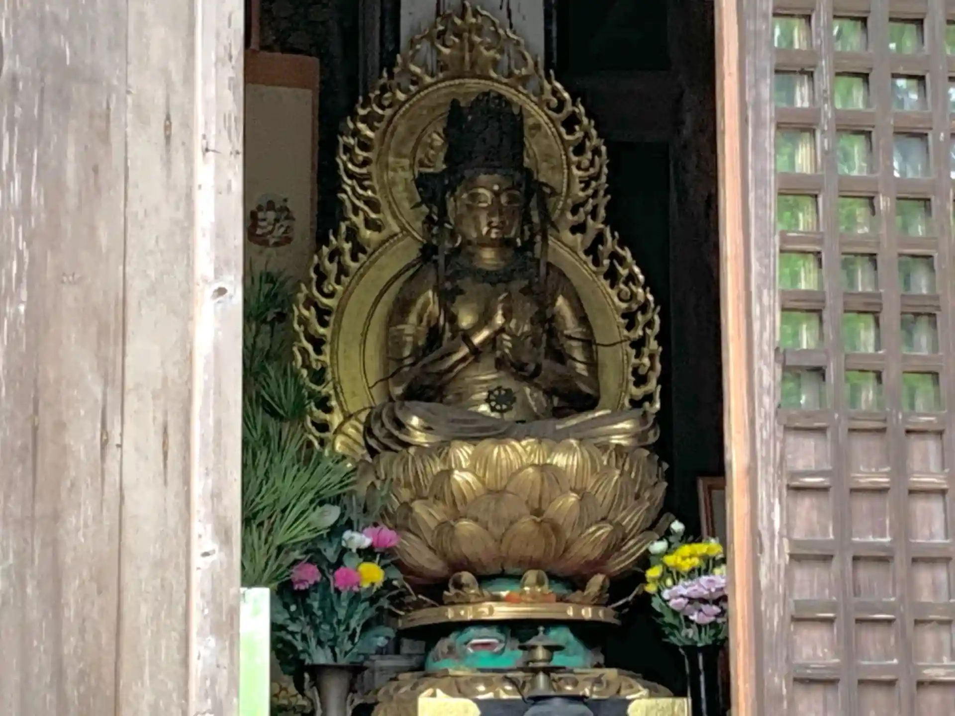 なんとまなめかしいこと。他の仏像と違って妙に色っぽいんですよね。恐らくコロナ禍と雨が重なって、人出が少なかったので、2時前の到着で2時からの案内に間に合いました。ご開帳は30分ごとに行われ、住職が最初に解説をしてくれます。如意輪観音さまだけでなく、曼荼羅図や他の仏像、時代背景など色々と。