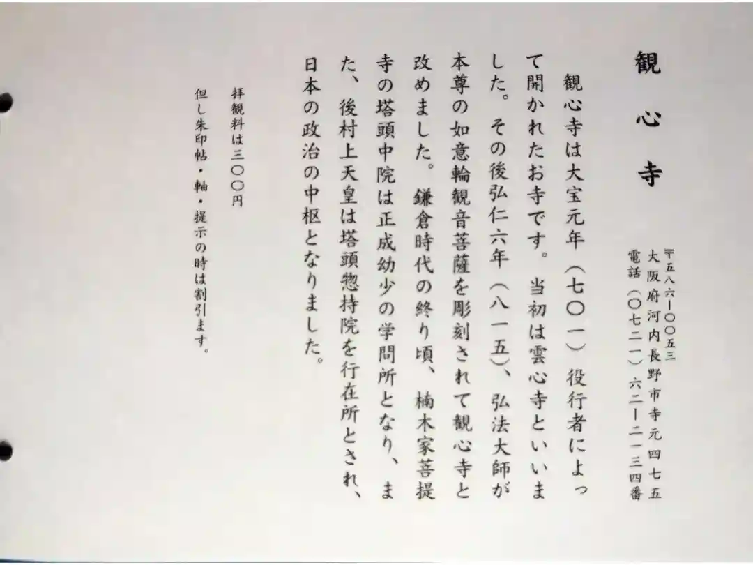 観心寺の御朱印・御朱印帳
