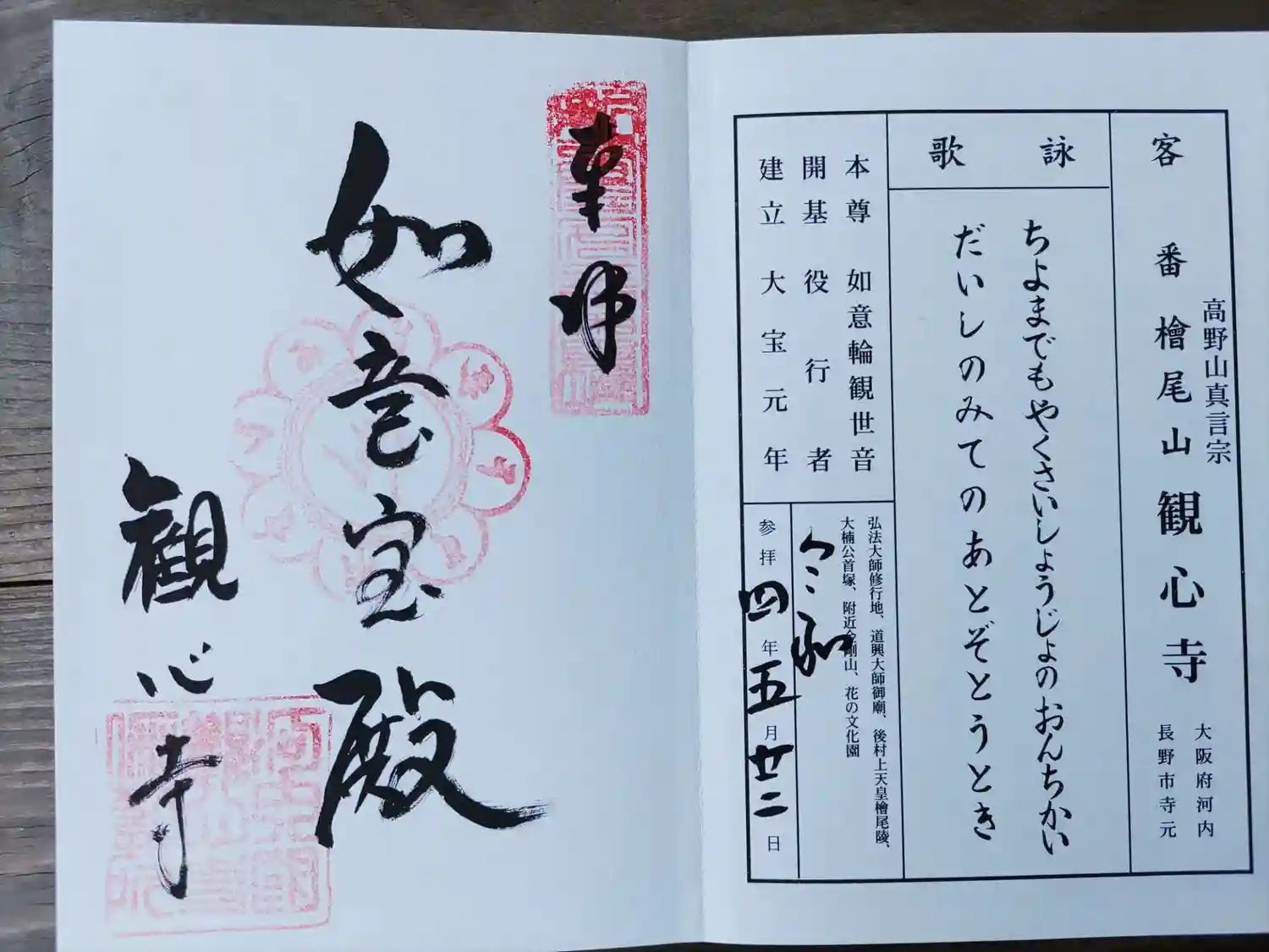 御本尊「如意輪観音菩薩」の写真が載っている御朱印帳を購入させていた…