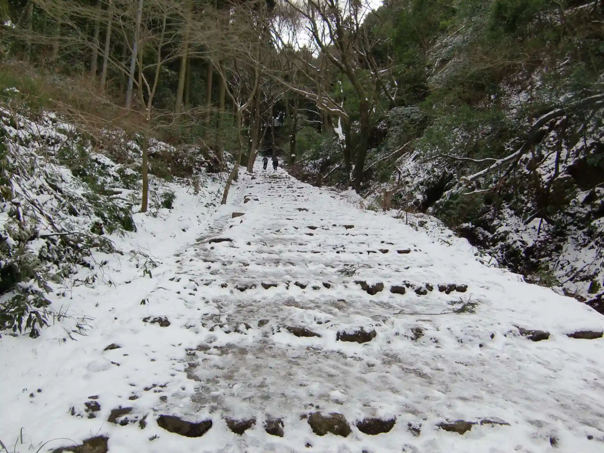 前日からの雪で参道から本堂まで歩きにくい・・・滑るのを気にしながら登りました。