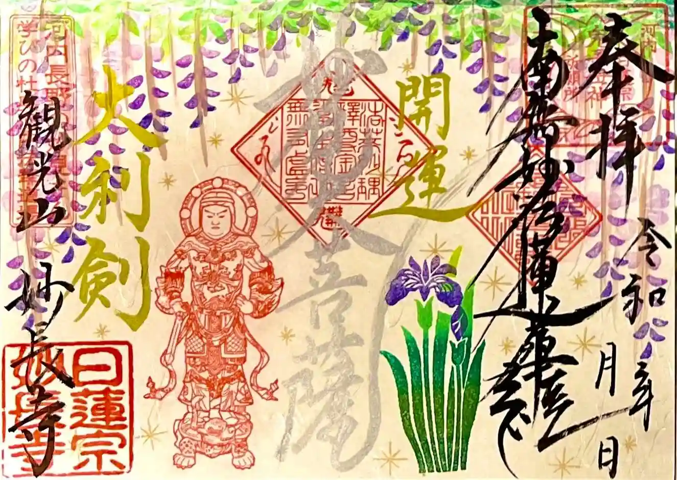 妙見さまの通常御朱印・御首題(藤と菖蒲デザイン)